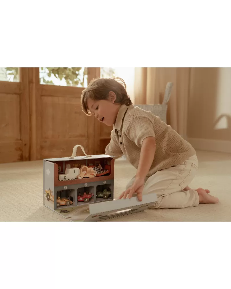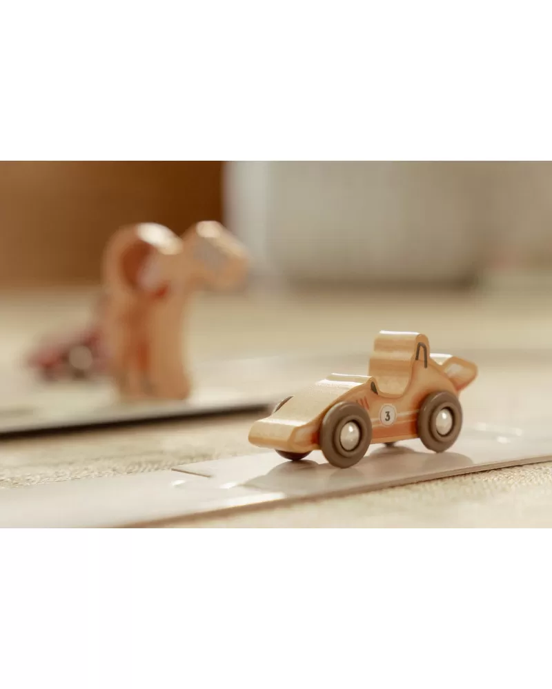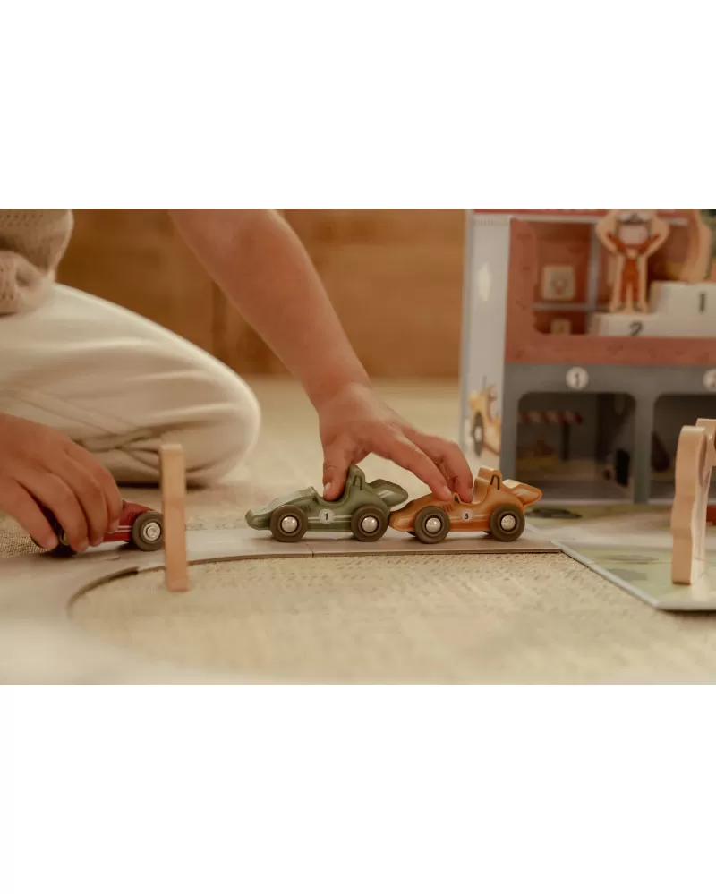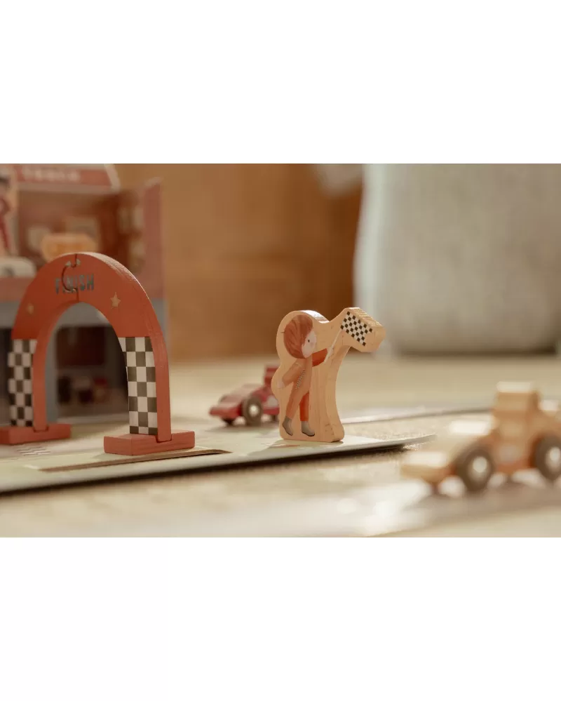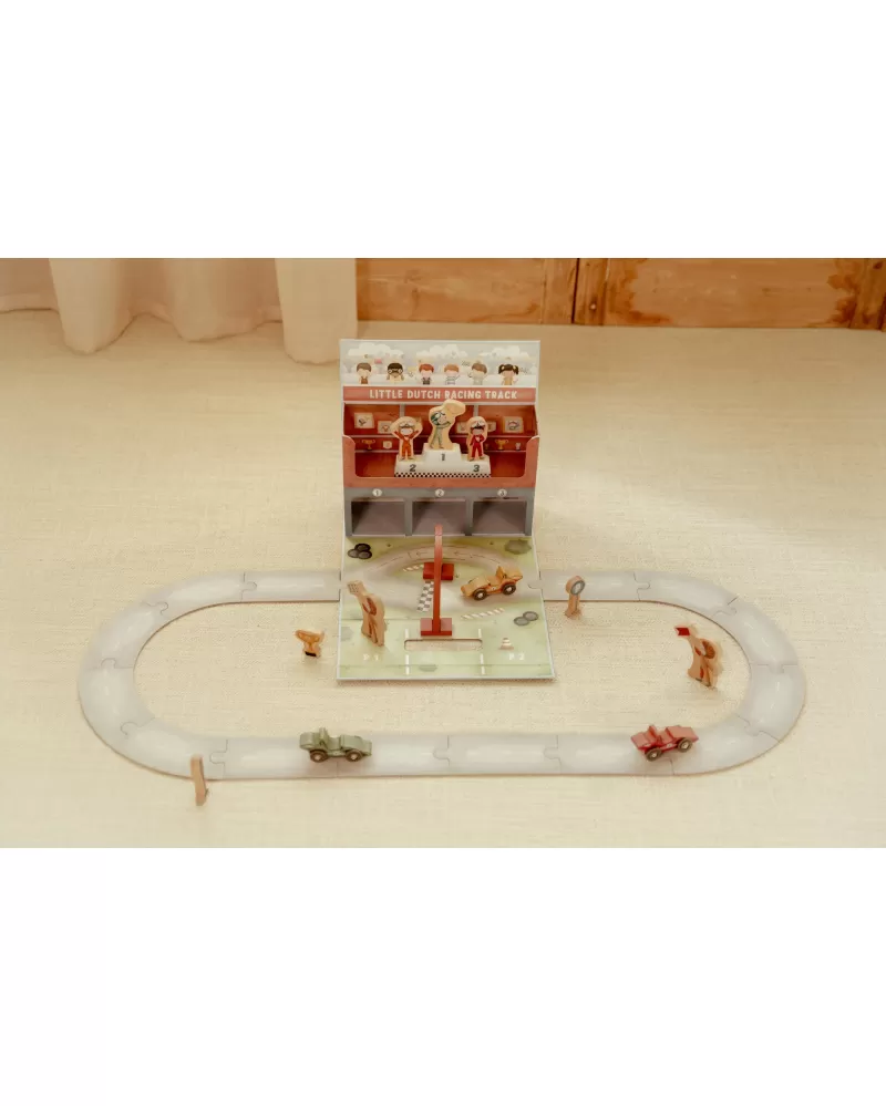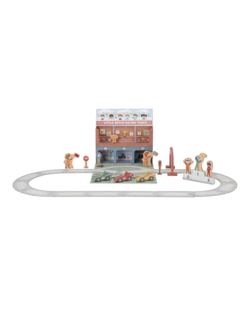 Nastartujte motory, závod začíná! Tato závodní dráha Little Dutch ukrytá v praktickém kufříku se během chvilky promění v kompletní autodráhu plnou akce. Sada obsahuje vše, co malí závodníci potřebují ke vzrušujícímu klání – dřevěná závodní auta s řidiči, cílovou pásku, dopravní značky, stupně vítězů i zlatý pohár pro šampiona.