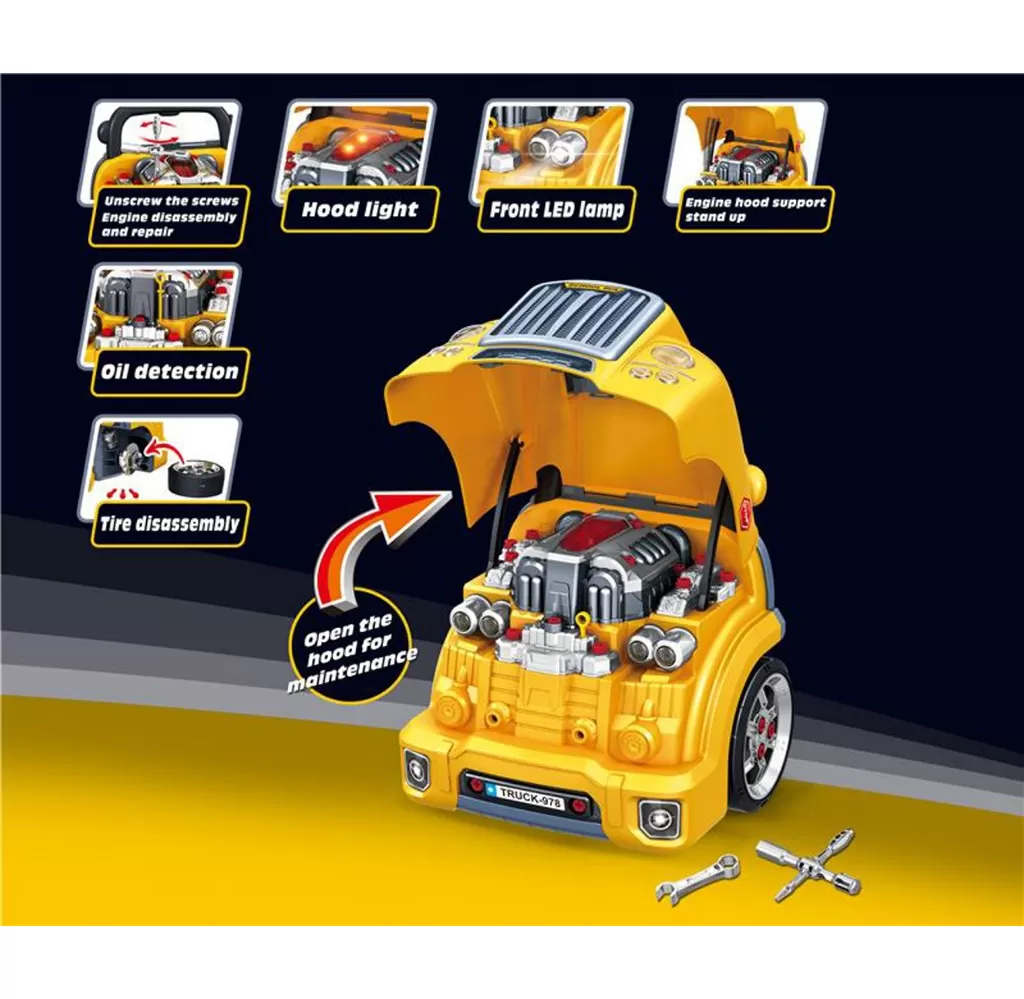 Hračka obsahuje světelné a zvukové efekty, které dodávají hernímu zážitku vzrušení a realismus. Díky sadě nářadí a pohyblivým částem mohou děti opravovat auta, měnit pneumatiky, utahovat šrouby a učit se základy mechaniky prostřednictvím akce. Rozvíjí manuální dovednosti a logické myšlení a podporuje učení hrou.