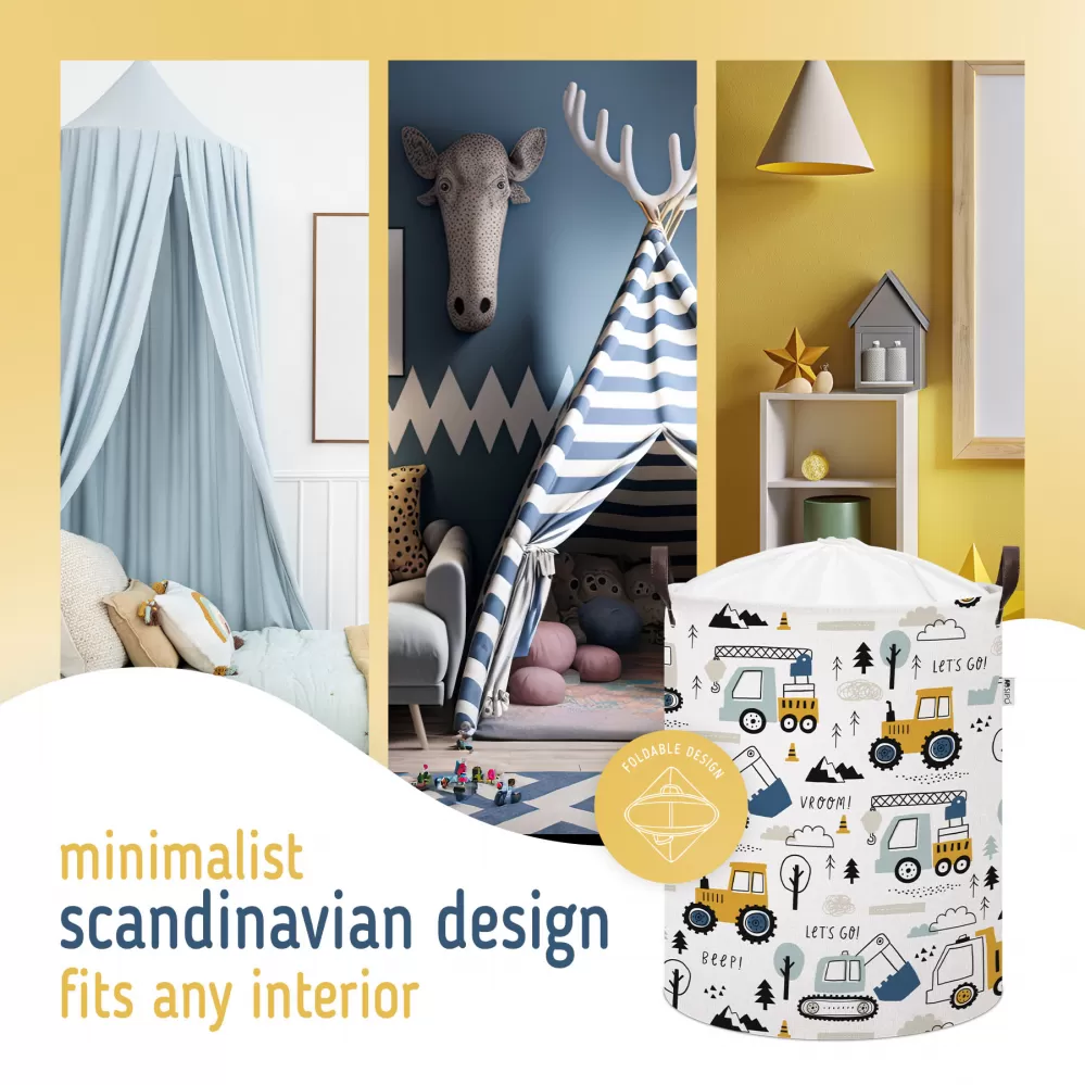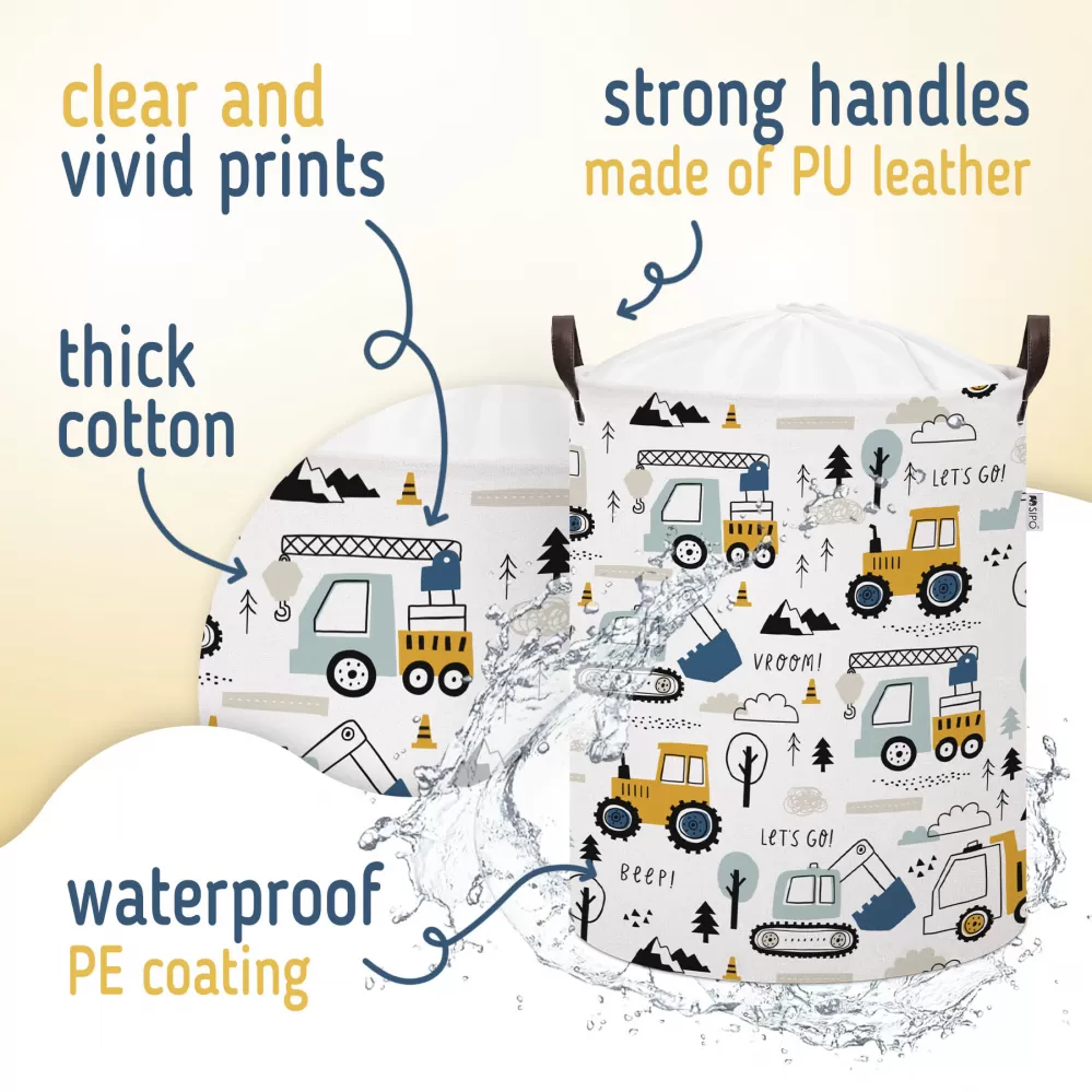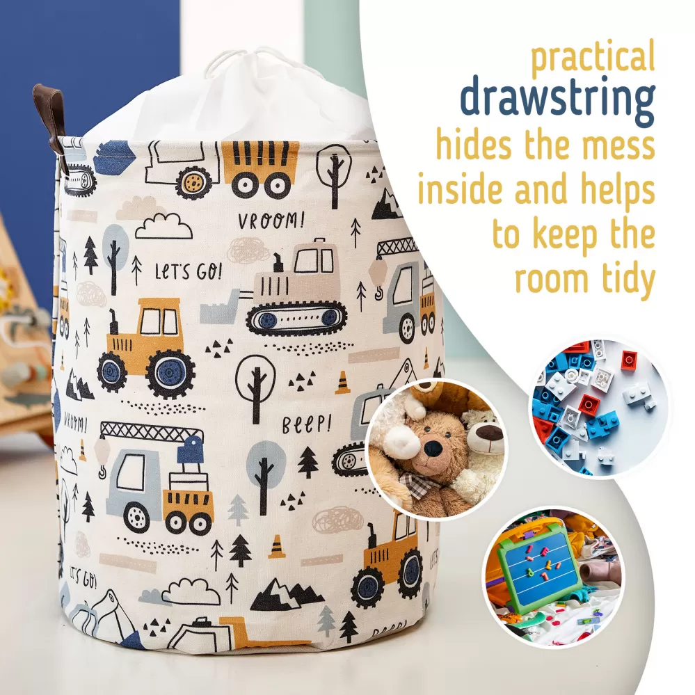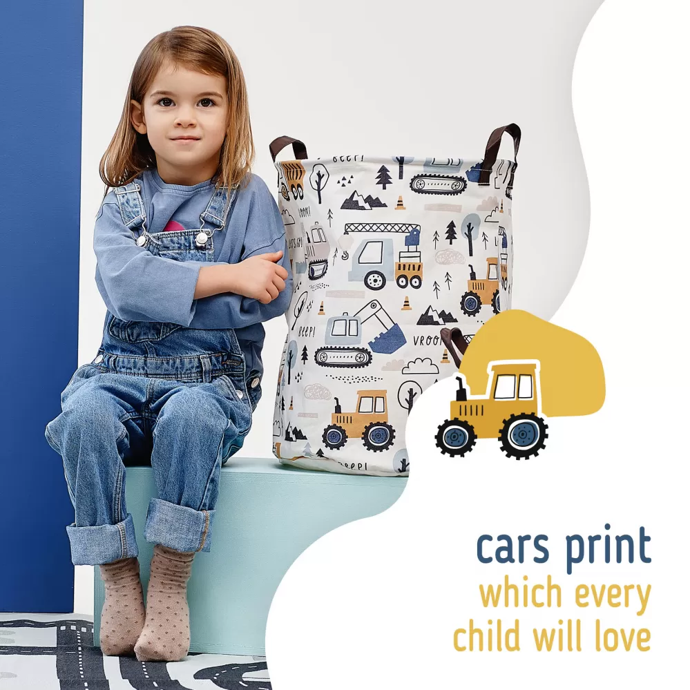 Sipo Koš na hračky se šňůrkou, skládací bavlněný / 43 l, Mini Trucks