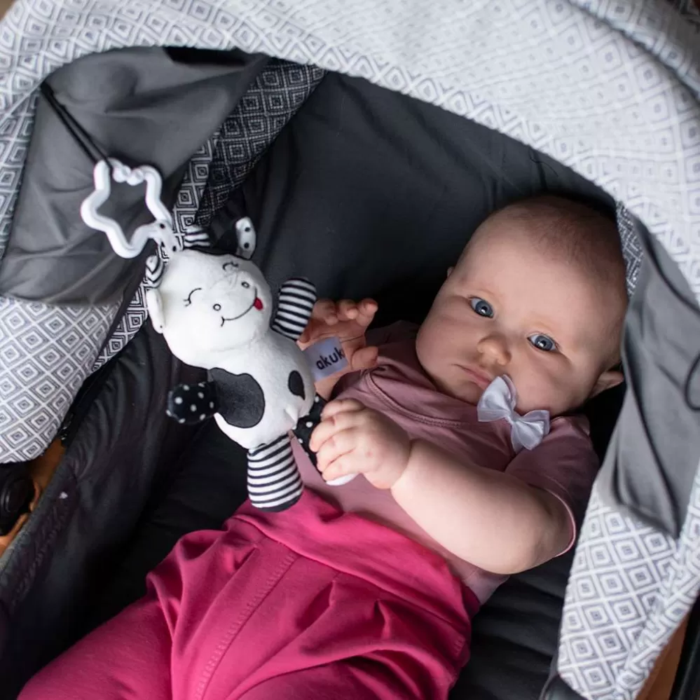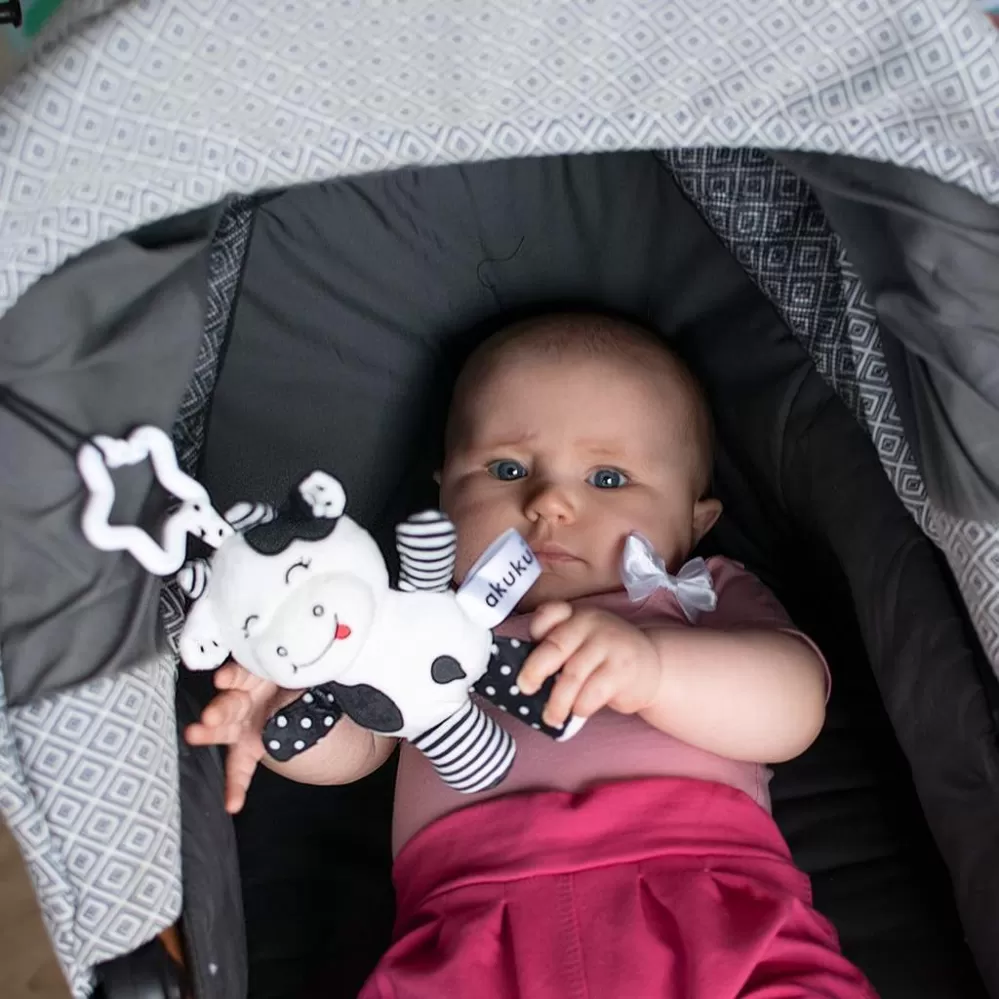 Akuku Plyšová hračka s chrastítkem kravička černobílá