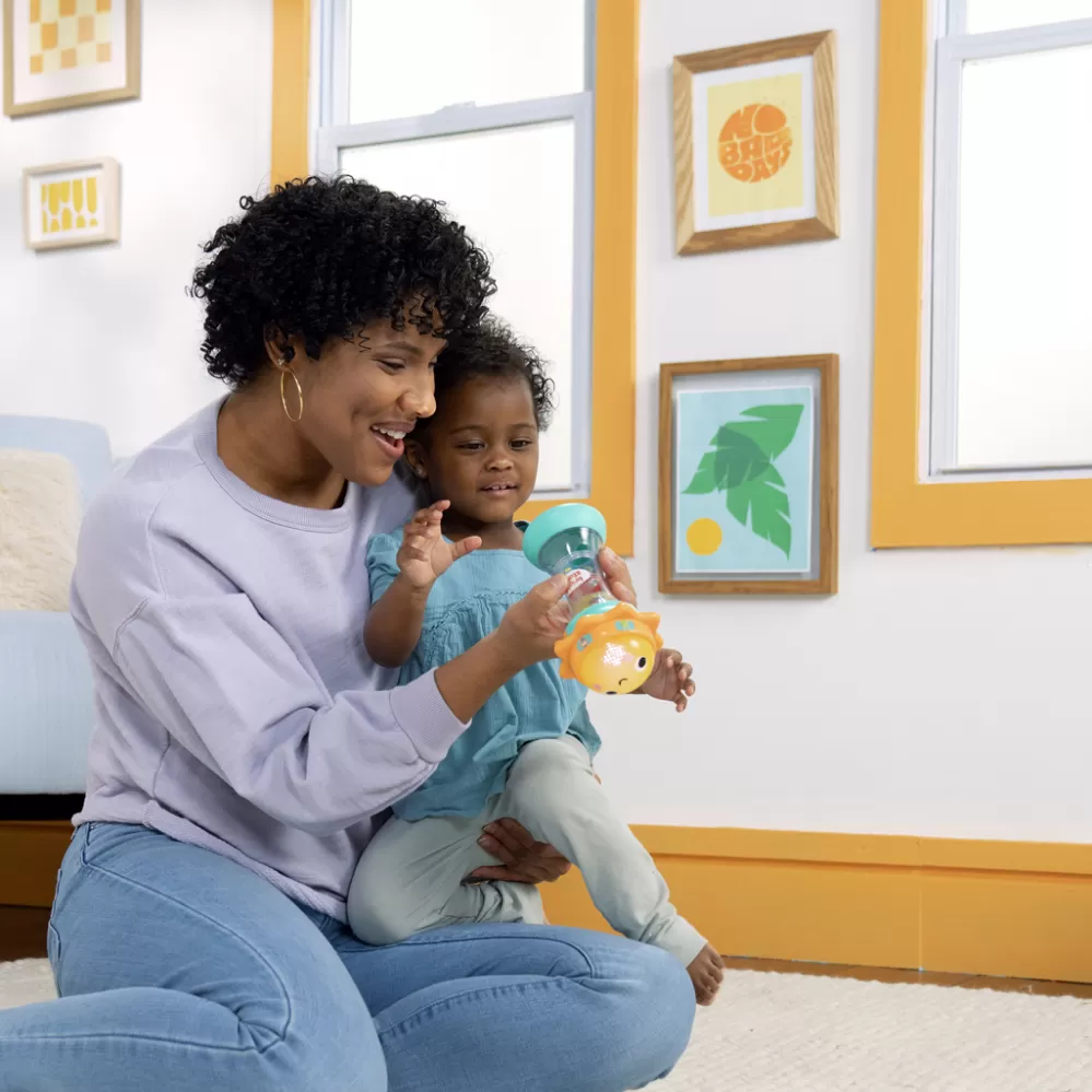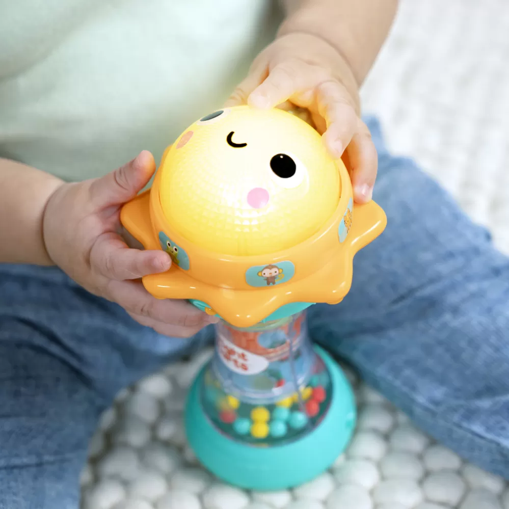 Zažij zářivou radost s hračkou Just for Sun od Bright Starts! Svítící hračka zabaví miminko veselými světly, zvuky zvířátek a chrastícími kuličkami. Otáčej sluneční kopuli, která svítí, a objev více než 30 melodií a zvuků – od mňoukání, přes rýlení až po kvákání a další. Při potřesení se kuličky uvnitř rozkutálejí jako kapky deště, čímž dítě získává další vizuální i zvukovou stimulaci. Spodní strana hračky skrývá zrcátko, které podporuje vnímání vlastního odrazu a sebeobjevování. Tato interaktivní hračka pomáhá dětem pochopit princip příčiny a následku a je ideálním společníkem na doma i na cesty. Perfektní dárek k oslavě narození, Vánoce či narozeniny! Vlastnosti: - Zábavná hračka se světly, zvuky zvířátek a chrastícími kuličkami - Otoč svítící sluníčko a objev 30+ zvuků (kočka, medvěd, žába, opice, ptáček, lev) - Potřes hračkou a sleduj, jak kuličky padají jako kapky deště - Spodní zrcátko pro podporu sebeuvědomění a vizuální stimulace - Podporuje smyslový vývoj a učení se příčiny a následku - Přenosný design vhodný i na cesty (vejde se do většiny tašek na pleny) - Vhodné pro děti od 6 měsíců - Vyžaduje 2x AAA baterii (součástí balení je baterie pro demo verzi, doporučuje se vyměnit po koupi) Materiál: – 90% plast a 10% kov. Věkové rozpětí: 6 – 36 měsíců Rozměry produktu: 17,7 cm x 9,7 cm x 9,7 cm Důležité: Před předáním výrobku dítěti odstraňte veškerý obal a upevňovací prvky. Tento obal a návod k použití si uschovejte pro budoucí použití – obsahují důležité informace. V rámci neustálého procesu zlepšování a inovace naše výrobky průběžně aktualizujeme. Adresa dodavatele: KIDS2 EUROPE BV 5 Keizersgracht 287, 1016 ED Amsterdam, Netherlands; +31 20 241 0934.