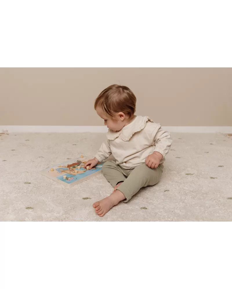 Puzzle hra v dřevěném provedení s krásnými obrázky nabízí 7 různých vkládacích dílů.