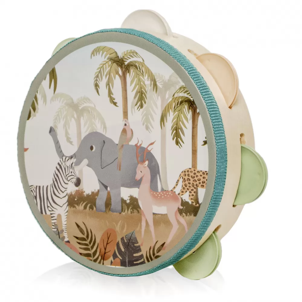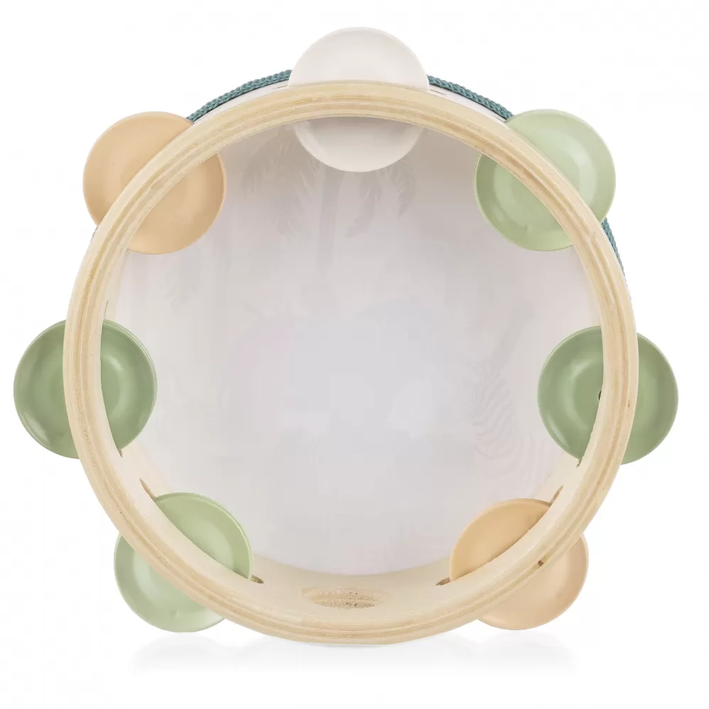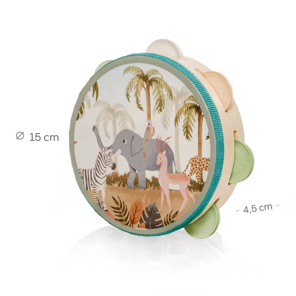 Tamburína je lehká, snadno uchopitelná a bezpečná i pro ty nejmenší. Díky své velikosti ji dítě může snadno držet oběma nebo jednou rukou. Ideální pro hru doma, na cestách i ve skupinových aktivitách.