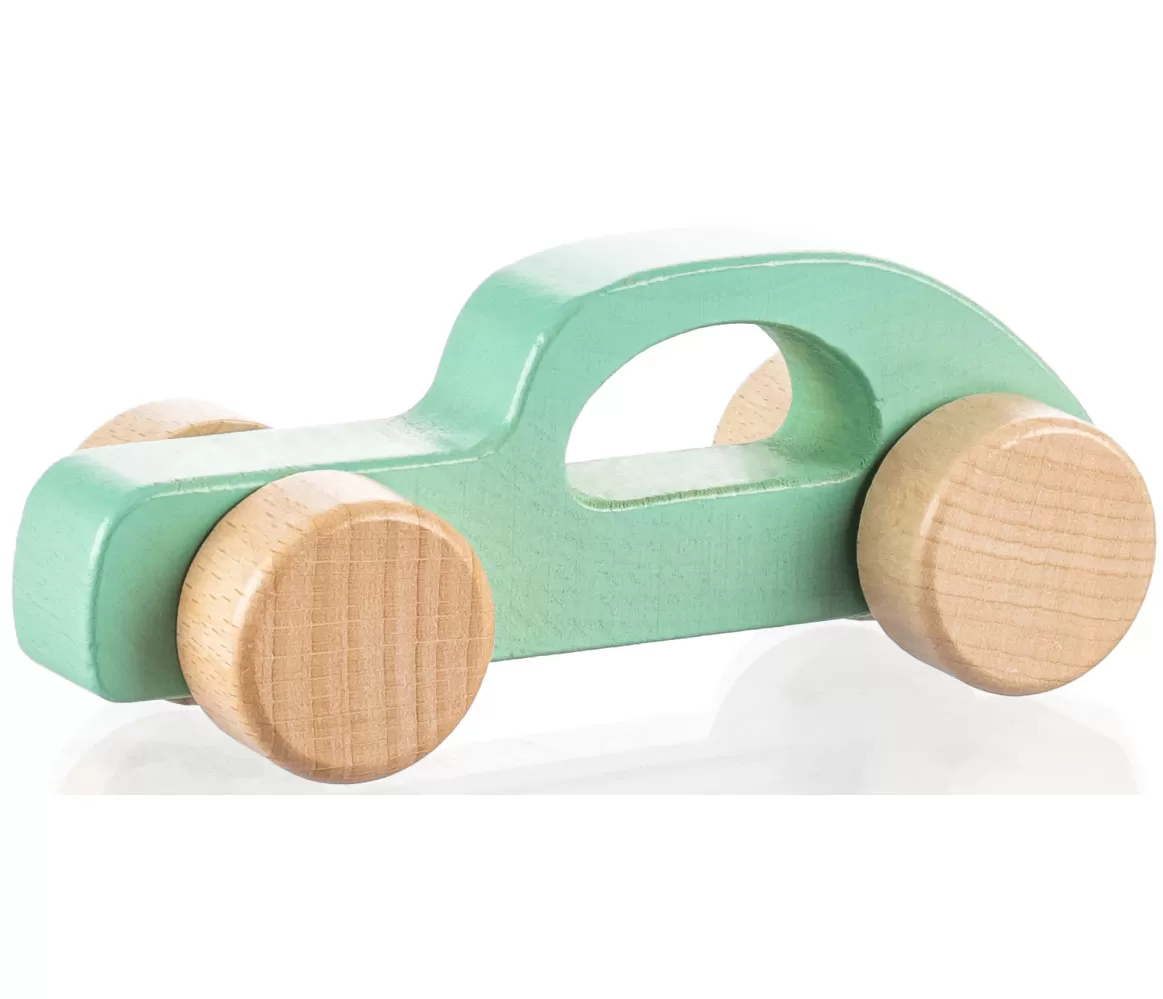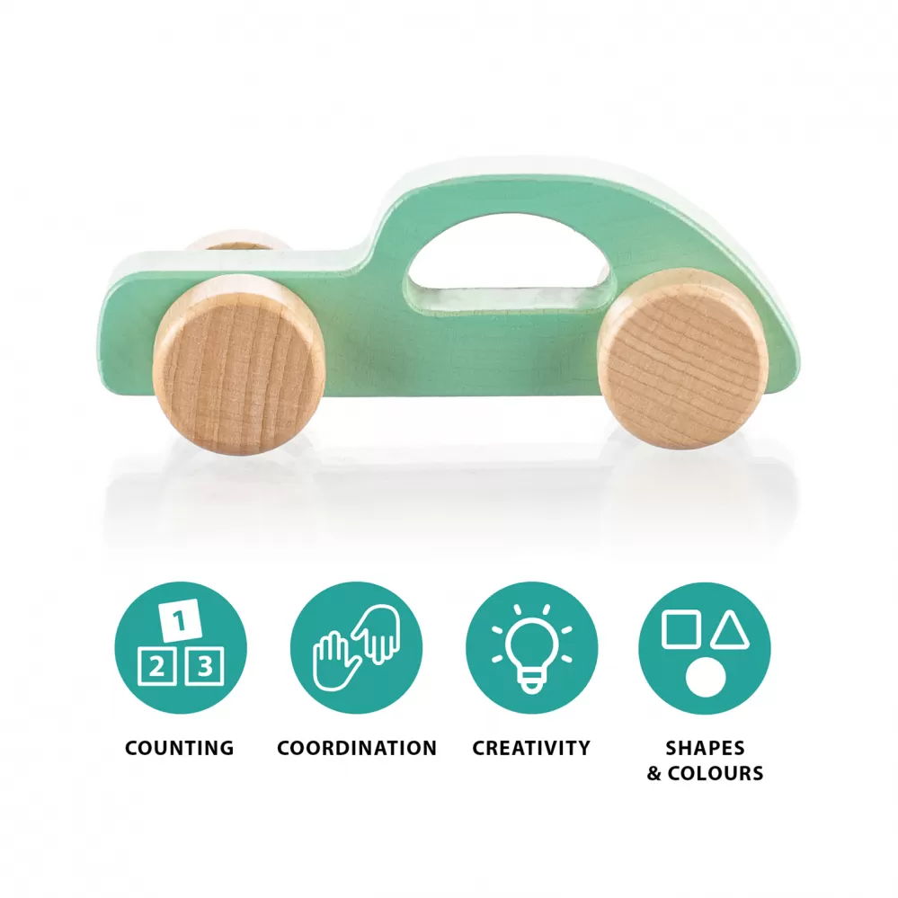 Hračka je vyrobena z kvalitního bukového dřeva a barev na vodní bázi. Odolná kolečka zvládnou jízdu po koberci, podlahách, ale i na dětských hřištích či trávě, pokud se dítě rozhodne vzít si autíčko ven.