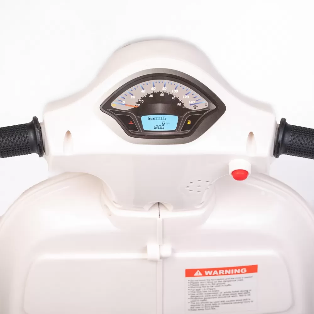 Navíc, tato dětská Vespa přináší ještě víc zábavy! Díky vestavěné hudbě si vaše dítě užije rytmické melodie během jízdy, což přidává dobrodružství další rozměr. Svítící přední LED světla nejenže zvyšují bezpečnost, ale také dodávají vozítku autentický vzhled Vespy. Vaše dítě bude nejen jezdit s elegancí, ale také s výrazným stylem a zábavou!