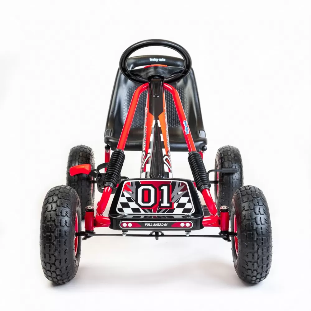 Velké nafukovací pneumatiky zajistí komfort a pohodlí při jízdě na jakémkoli povrchu. Motokára má zabudovaný řetězový pohon s možností odpojení pohonu - funkce volnoběžky a ruční brzdu na zadní nápravě.