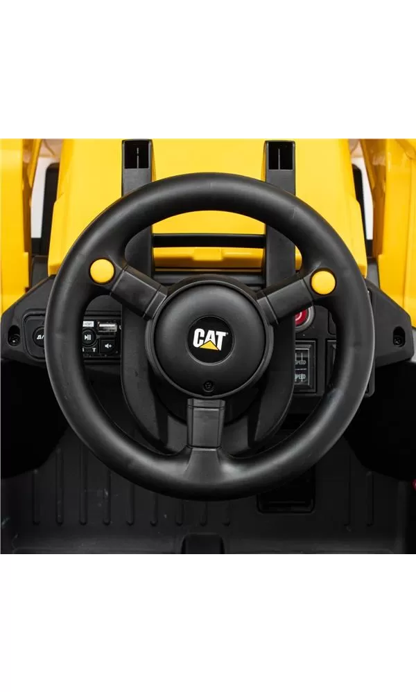 Elektrický traktor CAT má věrně zpracovaný vzhled stavebního stroje, což podporuje dětskou fantazii. Je vyroben z odolných a bezpečných materiálů, které splňují nejvyšší standardy kvality.