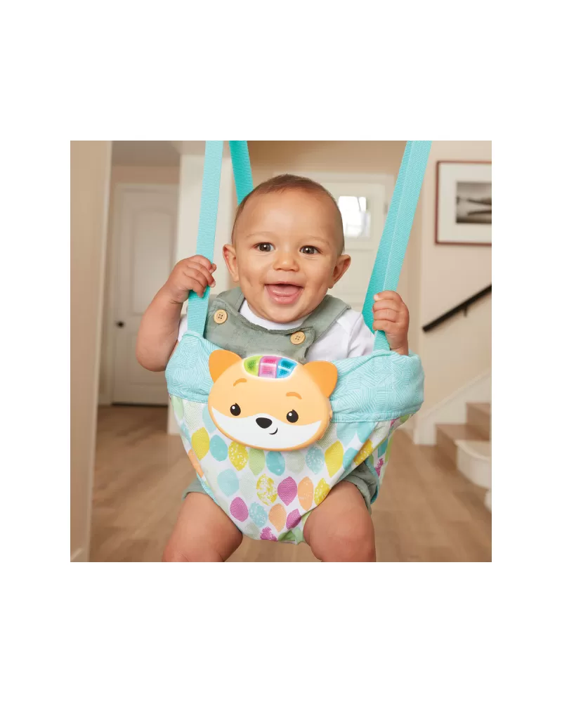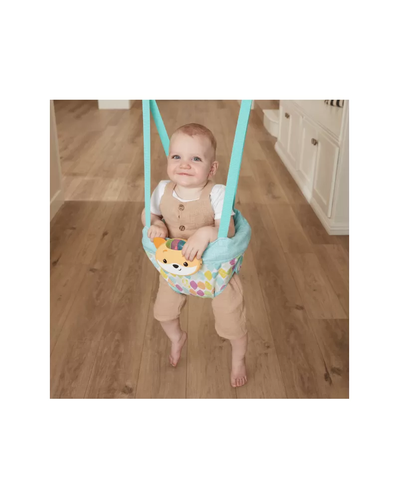 Vaše dítě si zamiluje hopsání ve skákadle, které snadno připevníte na dveřní zárubeň. Úchytný systém zajišťuje bezpečnost miminka sedícího v něm. Skákadlo je možné nastavit do různé výšky pro děti od 4 měsíců až do věku, kdy začínají chodit.
