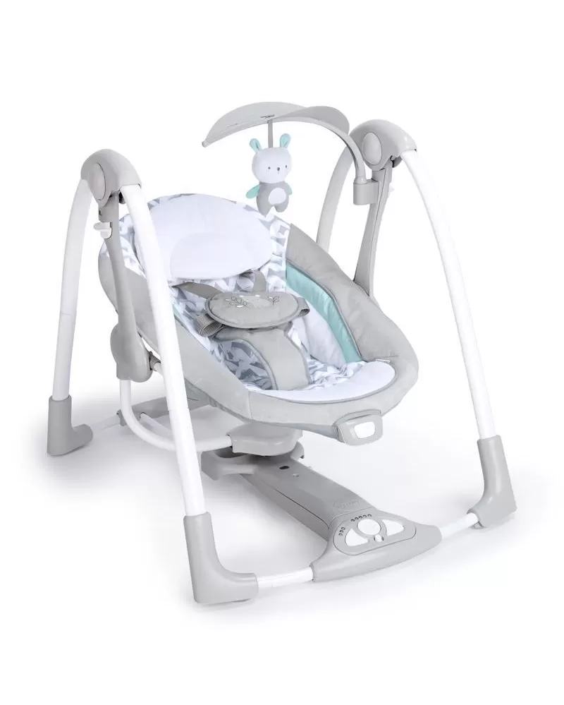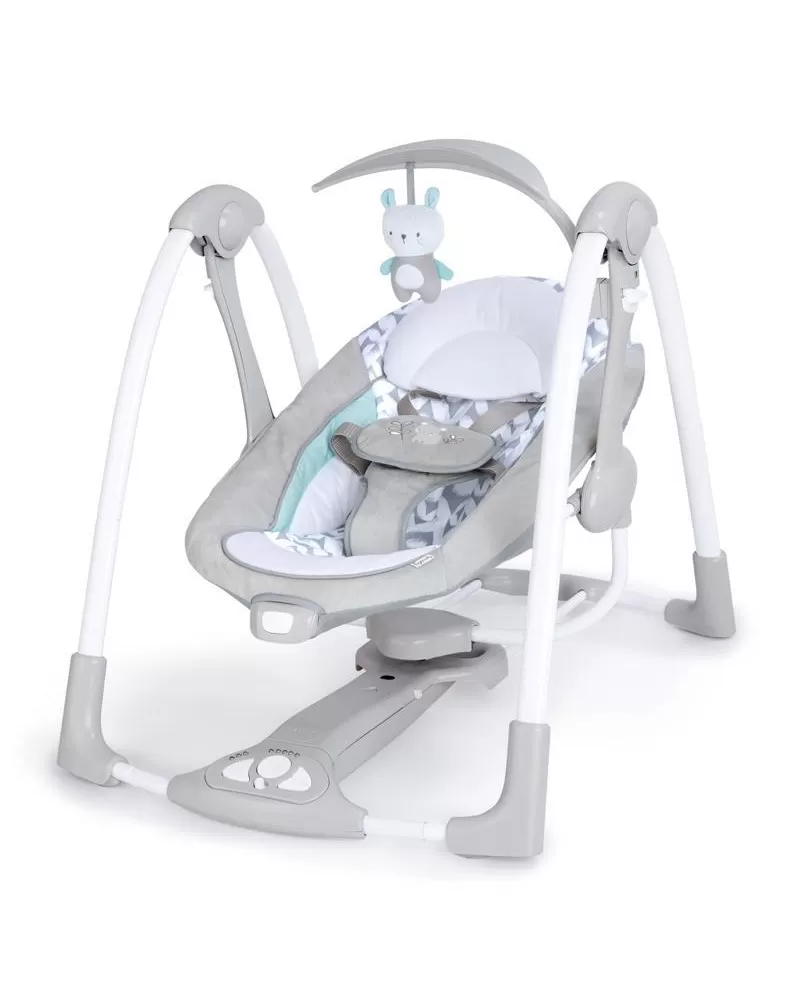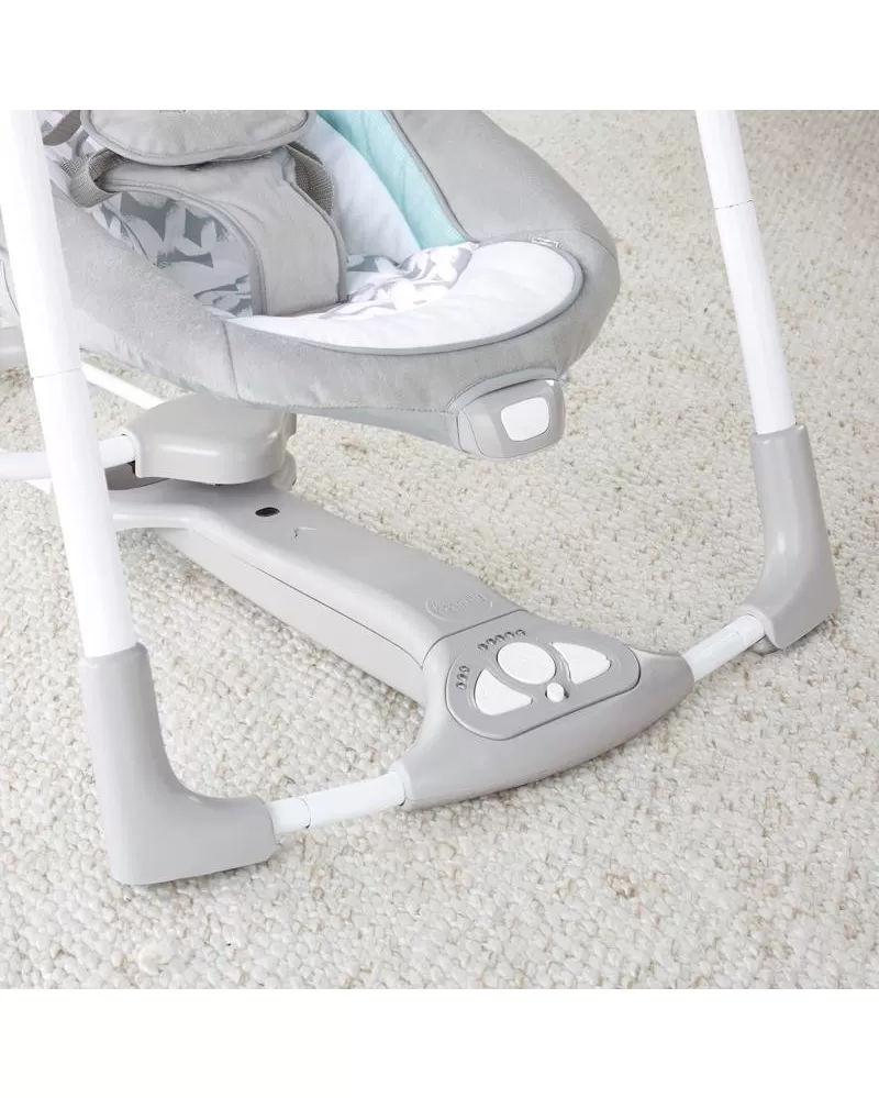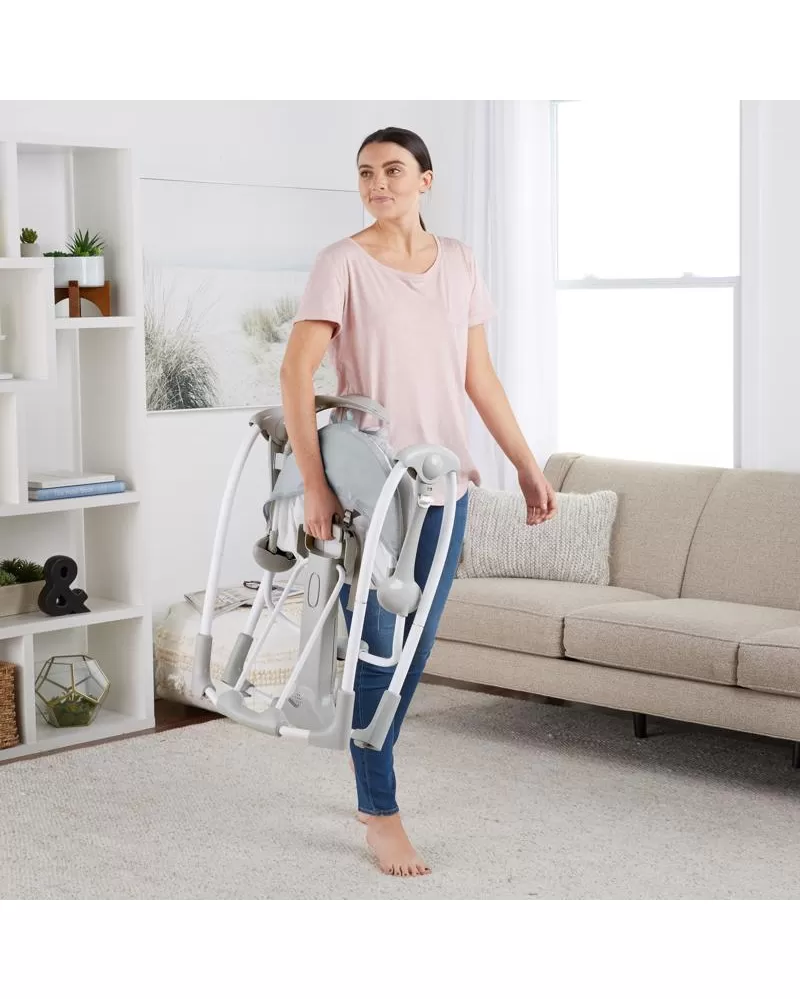 Šikovná houpačka, která umožní nastavení do dvou poloh. Houpačka se bez námahy promění na stacionární lehátko pomocí funkce EasyLock™ a vy můžete mít během dne na pár okamžiků volné ruce. Houpačka umožňuje nastavit 5 různých rychlostí, 12 melodií a 4 přírodní zvuky. Na houpačce je upevněn polohovatelný list s plyšovým kamarádem, ale i místy pro připojení více hraček. Houpačka se skladuje a přepravuje snadno díky designu Slimfold™. Časovač houpačky lze nastavit na 3 varianty: 30, 45 a 60 minut. S technologií WhisperQuiet™ děťátko bude odpočívat spokojeně bez rušení. Houpačka je vybavena 5- bodovým pásem a protiskluzovými nožičkami pro bezpečnost a snadno se udržuje v čistotě. Neutrální design a luxusní funkce usnadní den rodičům a dopřejí odpočinek děťátku. Vlastnosti: - možnost nastavení dvou poloh - technologie Slimfold™ pomůže houpačku snadno skladovat a přepravovat - technologie WhisperQuiet™ zajišťuje tiché houpání pro větší odpočinek - 5 rychlostí houpání, 12 melodií a 4 přírodní zvuky s ovládáním hlasitosti - 5-bodový pas a protiskluzové nožičky pro bezpečnost - houpačka vyžaduje 4D (LR 20) baterie, které nejsou součástí balení - vhodné pro děti od narození Rozměry produktu: 77,5 cm x 53,3 cm x 61 cm VAROVÁNÍ: Nepoužívejte tento výrobek, pokud vaše dítě umí sedět bez pomoci nebo váží více než 9 kg. Adresa dodavatele: KIDS2 EUROPE BV 5 Keizersgracht 287, 1016 ED Amsterdam, Netherlands; +31 20 241 0934