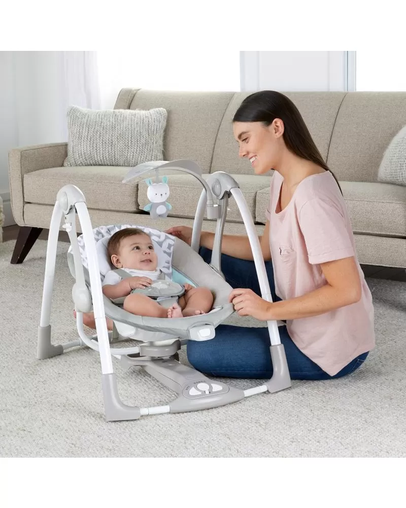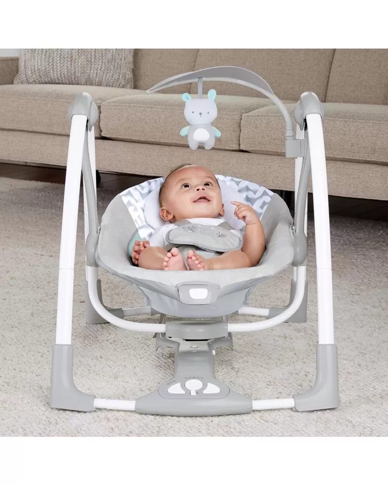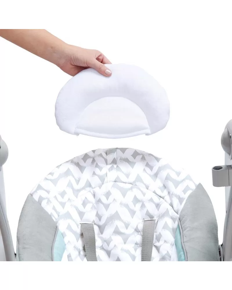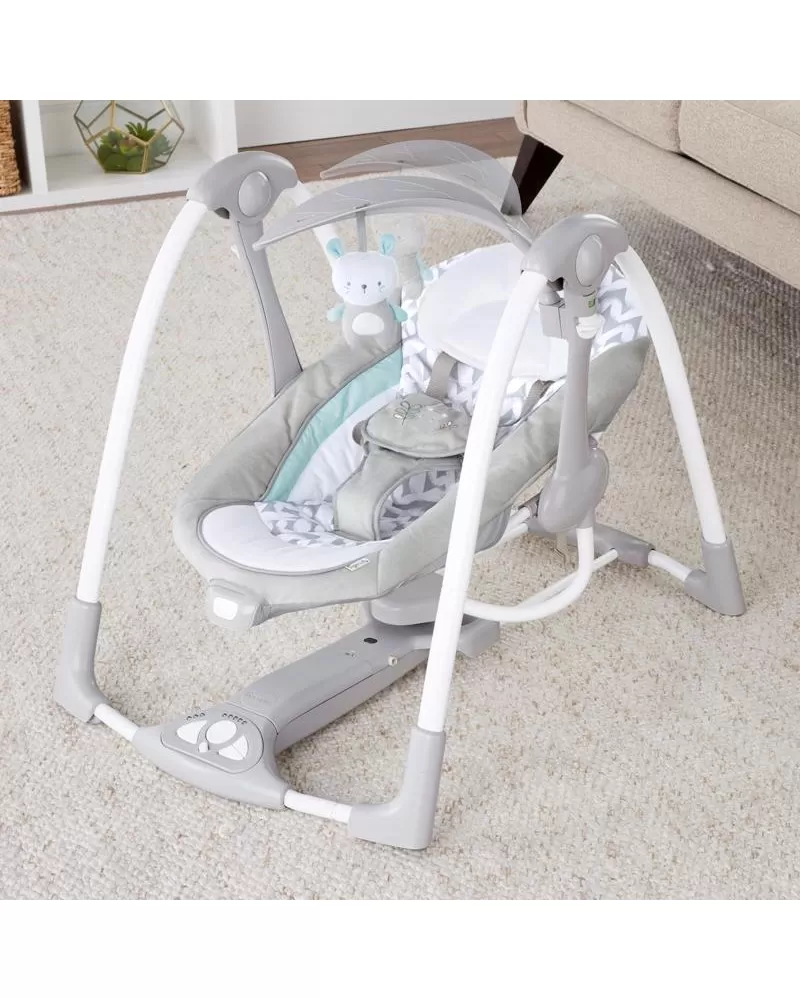 Šikovná houpačka, která umožní nastavení do dvou poloh. Houpačka se bez námahy promění na stacionární lehátko pomocí funkce EasyLock™ a vy můžete mít během dne na pár okamžiků volné ruce. Houpačka umožňuje nastavit 5 různých rychlostí, 12 melodií a 4 přírodní zvuky. Na houpačce je upevněn polohovatelný list s plyšovým kamarádem, ale i místy pro připojení více hraček. Houpačka se skladuje a přepravuje snadno díky designu Slimfold™. Časovač houpačky lze nastavit na 3 varianty: 30, 45 a 60 minut. S technologií WhisperQuiet™ děťátko bude odpočívat spokojeně bez rušení. Houpačka je vybavena 5- bodovým pásem a protiskluzovými nožičkami pro bezpečnost a snadno se udržuje v čistotě. Neutrální design a luxusní funkce usnadní den rodičům a dopřejí odpočinek děťátku. Vlastnosti: - možnost nastavení dvou poloh - technologie Slimfold™ pomůže houpačku snadno skladovat a přepravovat - technologie WhisperQuiet™ zajišťuje tiché houpání pro větší odpočinek - 5 rychlostí houpání, 12 melodií a 4 přírodní zvuky s ovládáním hlasitosti - 5-bodový pas a protiskluzové nožičky pro bezpečnost - houpačka vyžaduje 4D (LR 20) baterie, které nejsou součástí balení - vhodné pro děti od narození Rozměry produktu: 77,5 cm x 53,3 cm x 61 cm VAROVÁNÍ: Nepoužívejte tento výrobek, pokud vaše dítě umí sedět bez pomoci nebo váží více než 9 kg. Adresa dodavatele: KIDS2 EUROPE BV 5 Keizersgracht 287, 1016 ED Amsterdam, Netherlands; +31 20 241 0934
