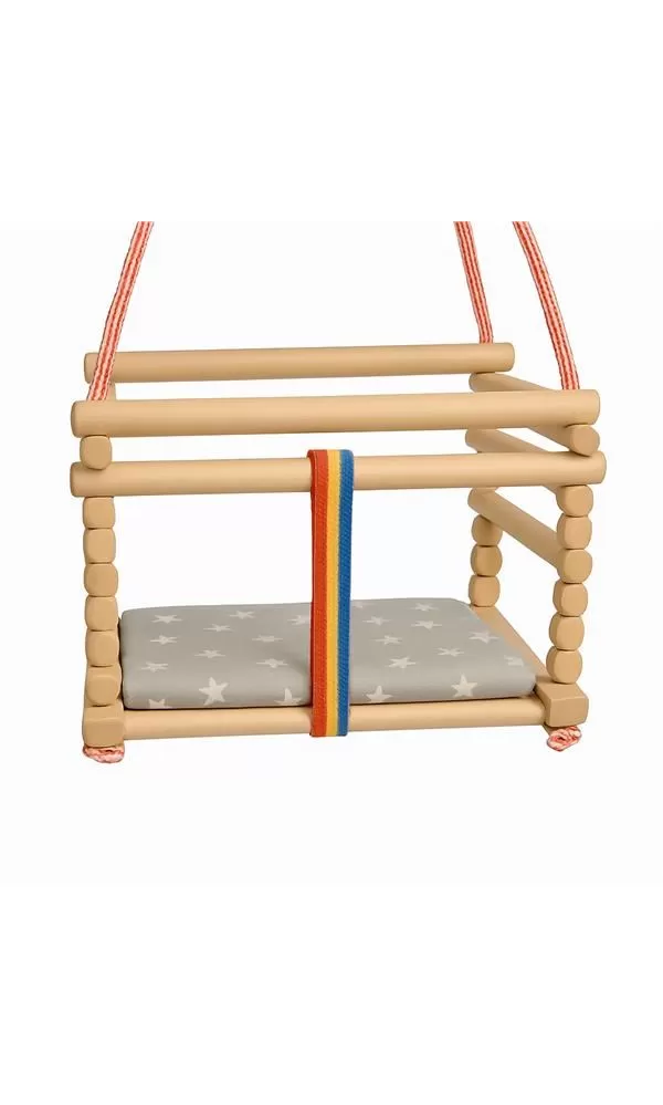 Pro zvýšení bezpečnosti je vybavena páskou, která chrání dítě před vypadnutím z houpačky.