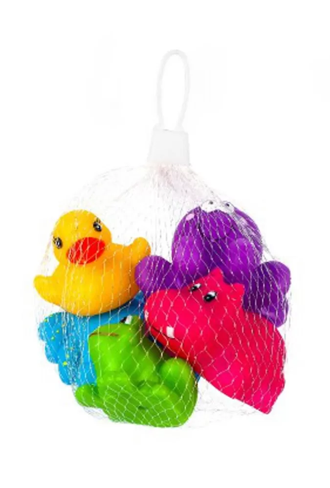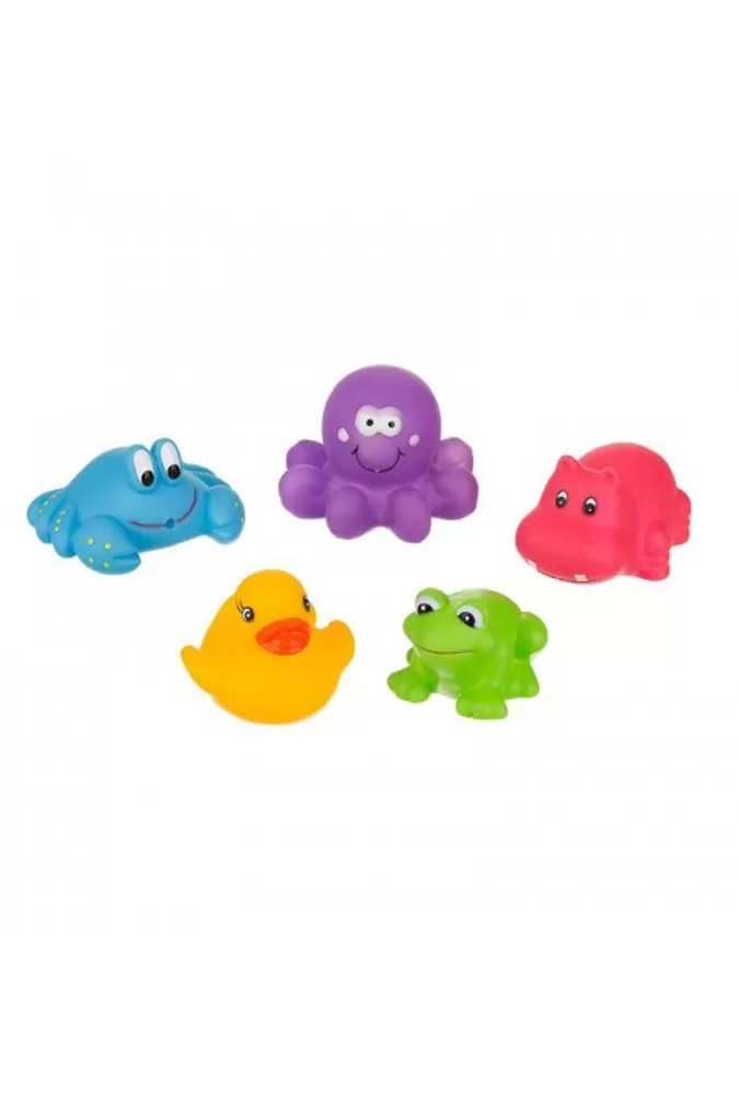 Barevné hračky do koupele Akuku. Sada 5 roztomilých barevných hraček - kachnička, žabka, hrošík, krab, chobotnice. Ideální na hraní ve vaně. Veselé barvy přitahnou pozornost našich nejmenších. Každá hračka má otvor, kterým můžete stříkat vodu. Zaoblené tvary zaručují bezpečnost během hry. Vyrobeny z bezpečných, vysoce kvalitních materiálů, neobsahují bisfenol A. Výška hraček 4 až 5 cm.