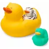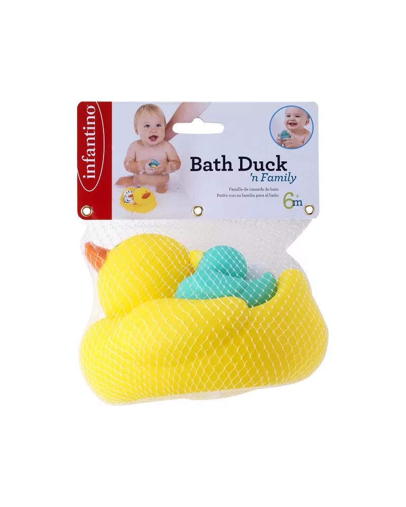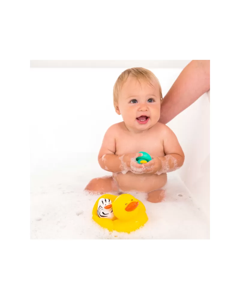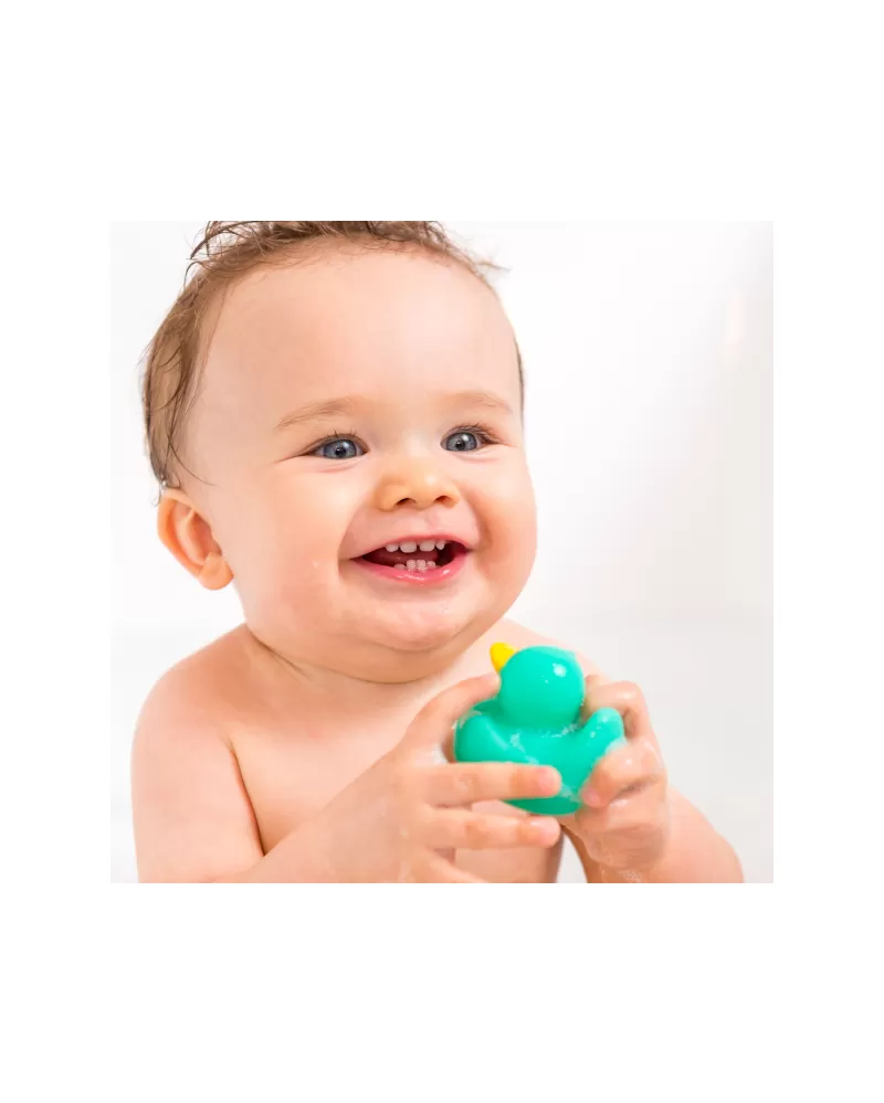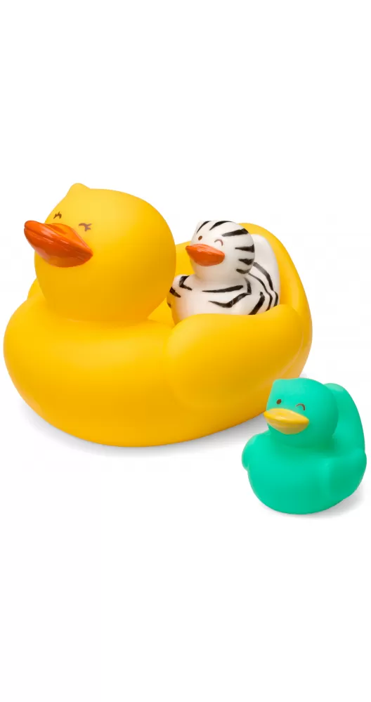 Kachní rodinku tvoří kačenka se dvěma kachňaty. Kačenka dokáže plout na hladině s oběma kachňaty na zádech, ale kachňata se umí pustit do vody i samostatně. Vymýšlejte spolu s dítětem během koupání příběhy, co všechno kachní rodinka na vodě zažívá a užívejte si společně příjemné chvíle před spaním.