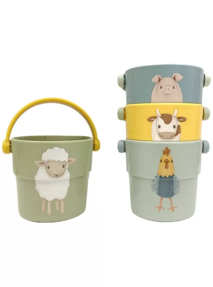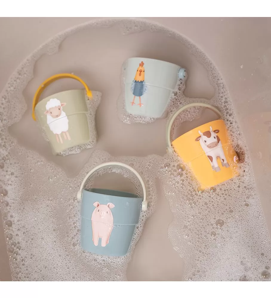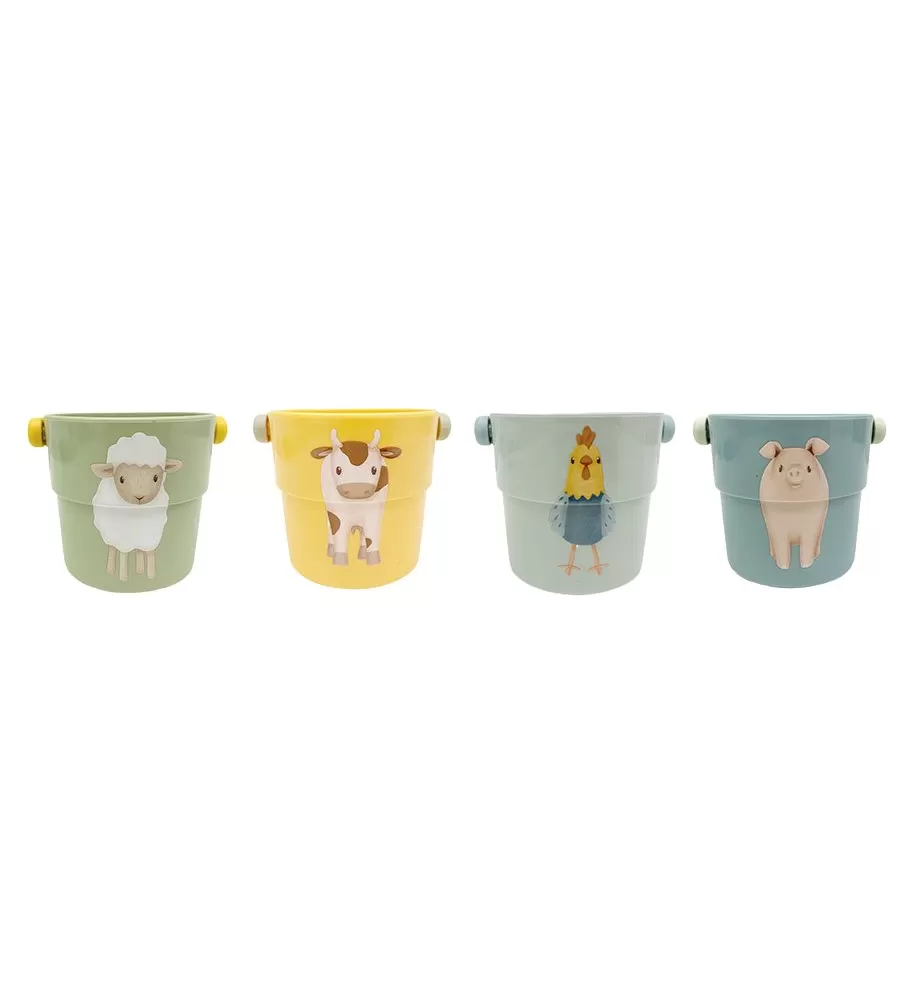 Čtyři malé kyblíčky s držadlem jsou krásným doplňkem do koupele, se kterým se koupání stane ještě zábavnější aktivitou. Jsou skvělé na přelévání vody, ale i na stavění a bourání věže při hraní na suchu.
