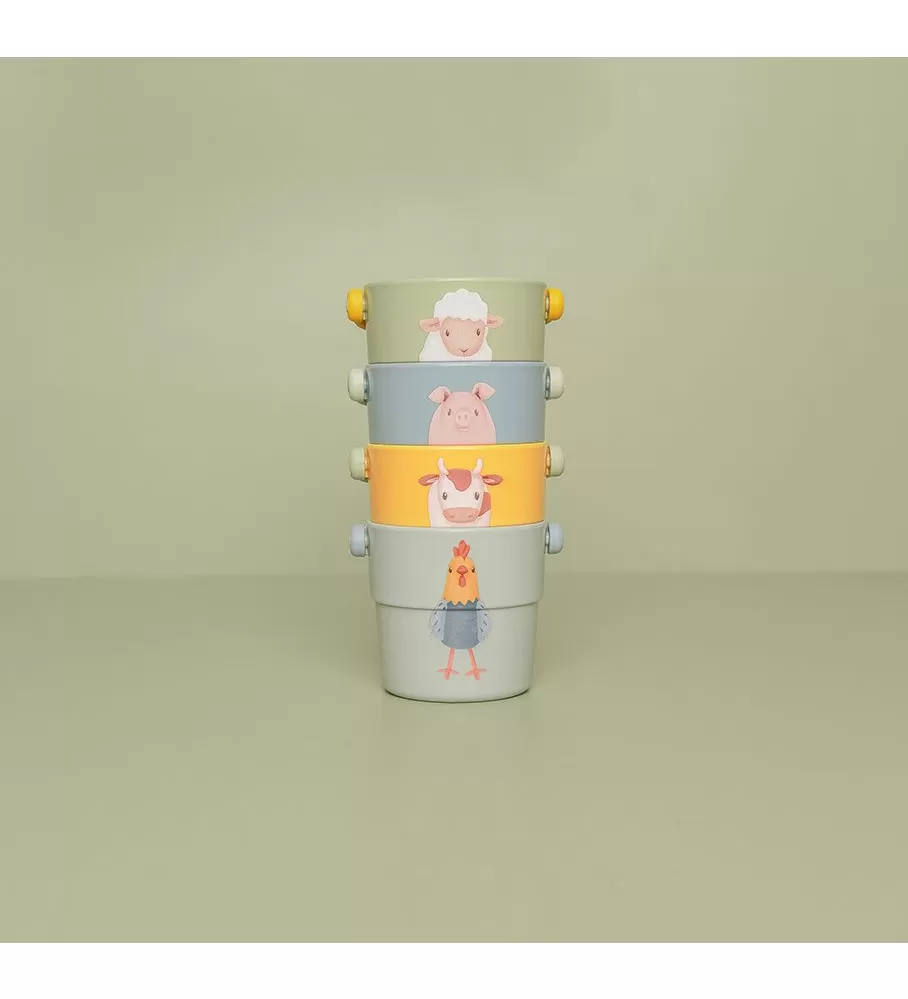 Kelímky v jemných pastelových barvách zdobí krásné ilustrace ze života na farmě.