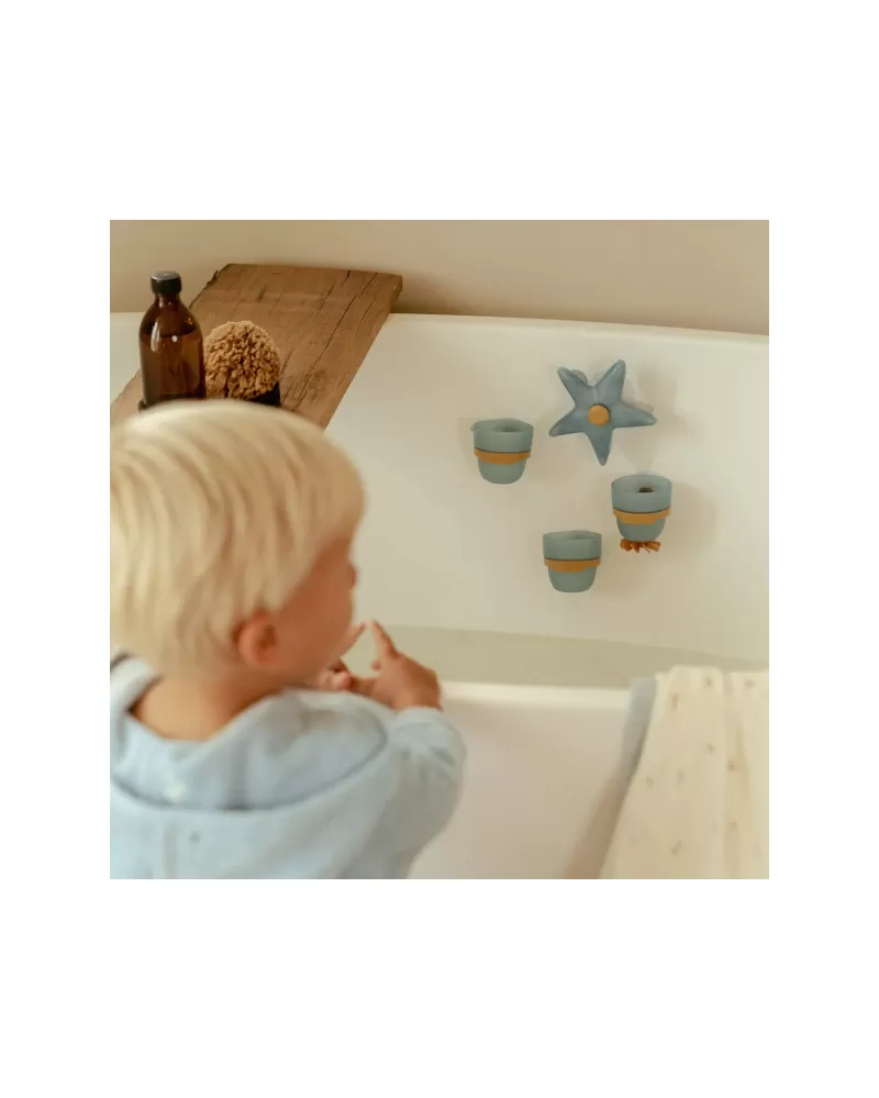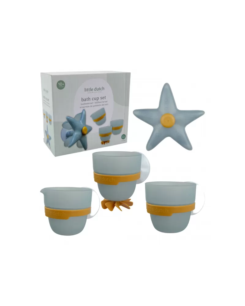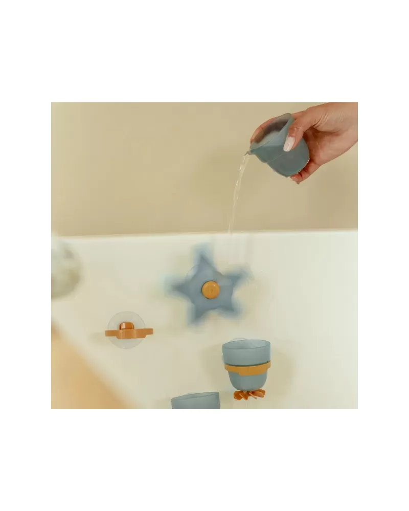 Proměňte koupání v radostnou hru se sadou kelímků Little Dutch! Tento hravý set obsahuje vodní mlýnek ve tvaru hvězdice, dva kelímky a nalévací hrneček, které lze pomocí přísavek snadno připevnit na stěnu vany nebo sprchy. Stačí nalít vodu na hvězdici a sledovat, jak se začne točit – děti si přitom procvičují koordinaci, objevují zákonitosti pohybu vody a rozvíjejí jemnou motoriku. Jemné barvy a promyšlený design hračky dělají z koupání příjemný rituál plný fantazie a objevování.