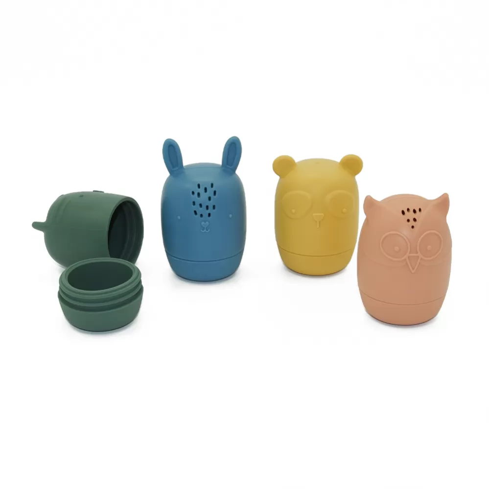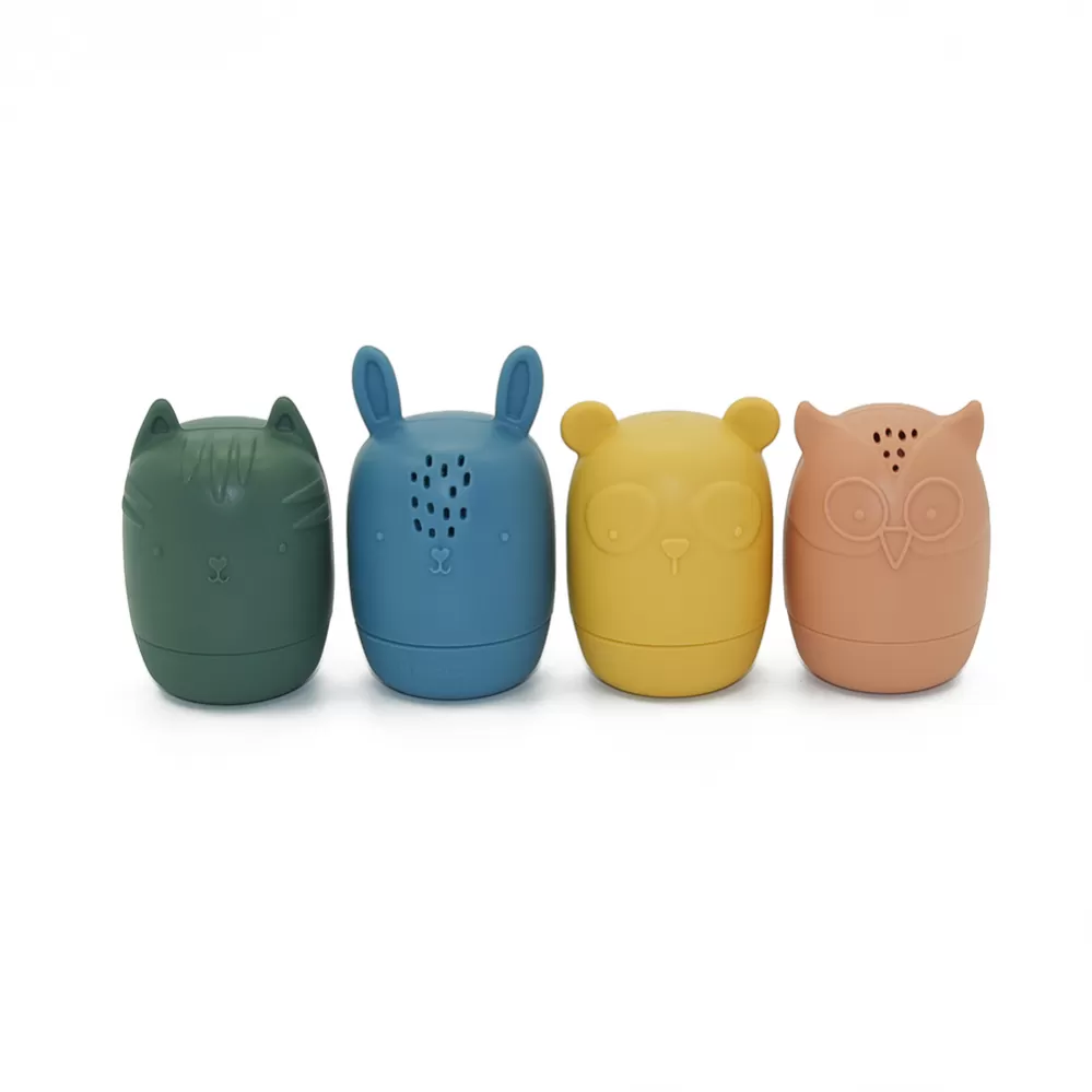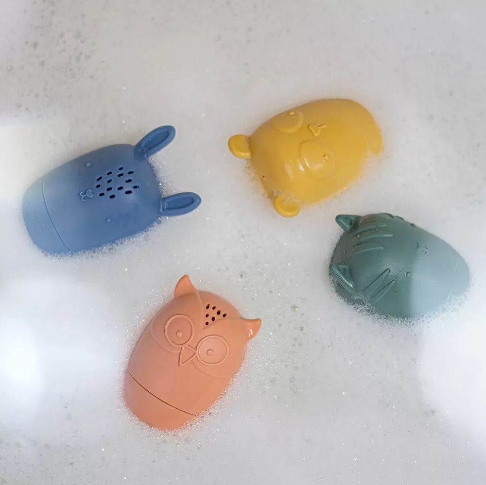 Vlastnosti: - měkké, lehké a flexibilní - vyrobeno ze 100% bezpečného potravinářského silikonu bez obsahu BPA - mají otvory pro nalévání vody - ergonomický design, tvarovaný s ohledem na nejmenší: malé rozměry usnadňují uchopení a hraní - bezpečný tvar - rozvíjí motorické schopnosti dítěte - snadno se čistí, protože jdou snadno rozebrat a vysušit - součástí balení jsou 4 hračky - vhodné pro děti od 6 měsíců (6m+) - rozměry 1 hračky: 8 x 5 cm - rozměr celého balení (4 hračky): 22 x 9,5 x 5,5 cm - hmotnost hračky: 46 g