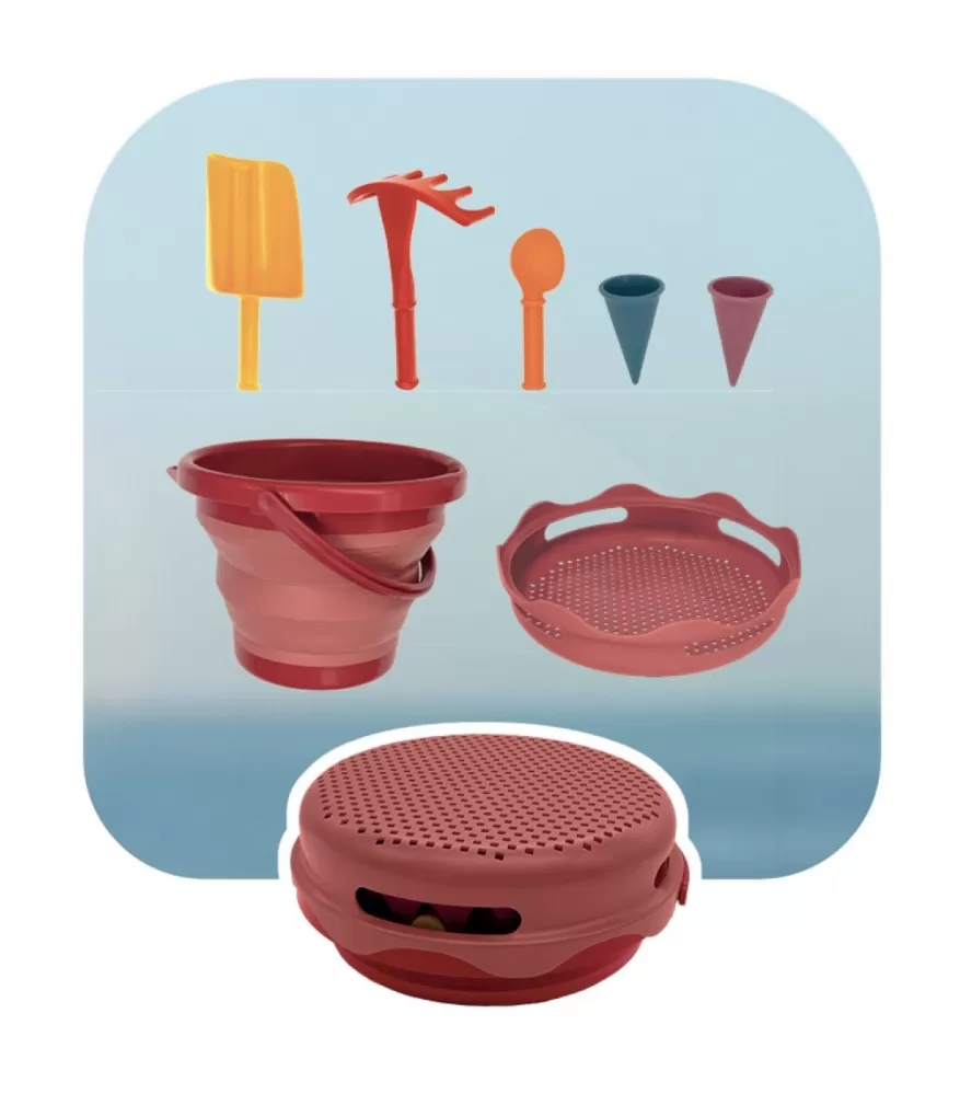 Skládací sada na písek kompletní sada hraček na písek design je přizpůsoben ergonomii malých dětských ručiček materiály neobsahují žádné… Celý popis
