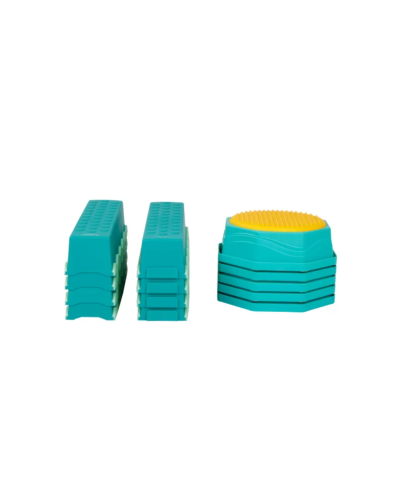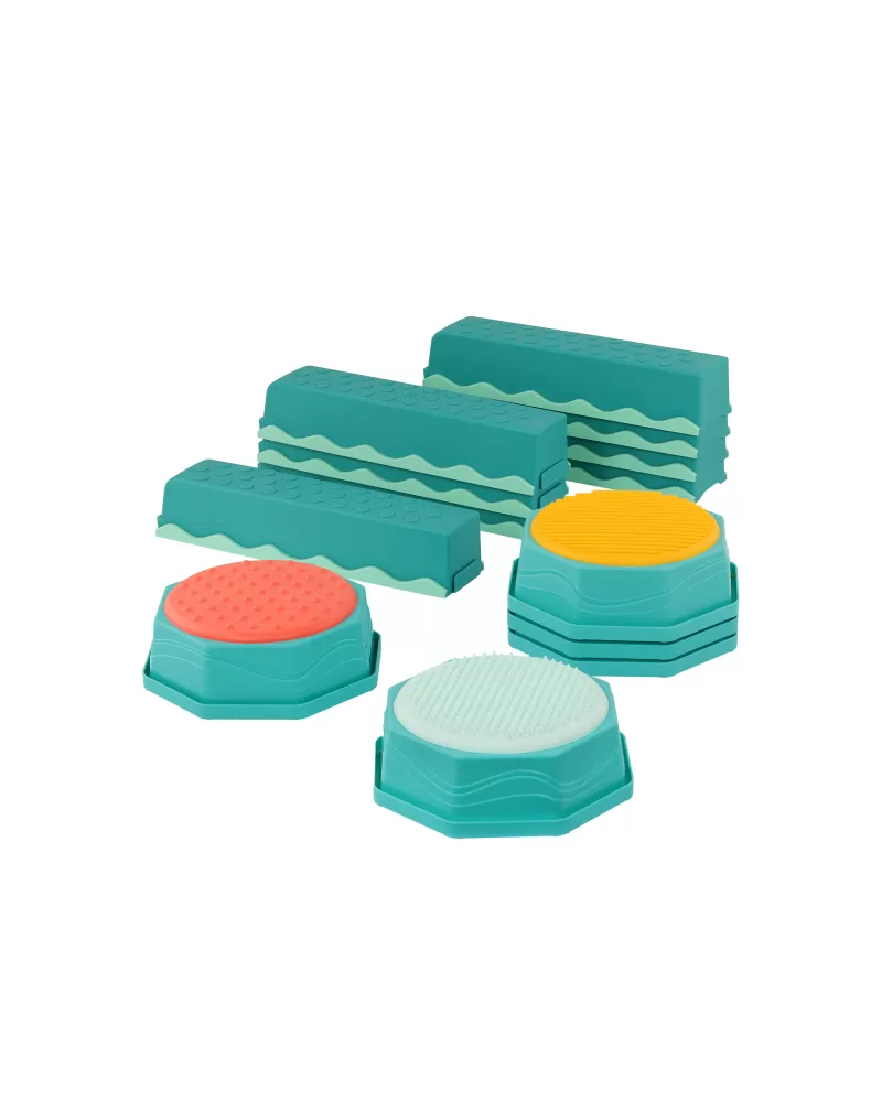Variabilní překážková dráha poskytne vašim dětem zábavu a zároveň pomáhá rozvíjet jejich rovnováhu, koordinaci a hrubou motoriku. Sada obsahující 8 rovných a 5 kulatých překážek nabízí mnoho kombinací a způsobů použití, takže pokaždé můžete vymyslet novou, zajímavou variantu. Každá kulatá překážka navíc nabízí jinou texturu na horní barevné straně.