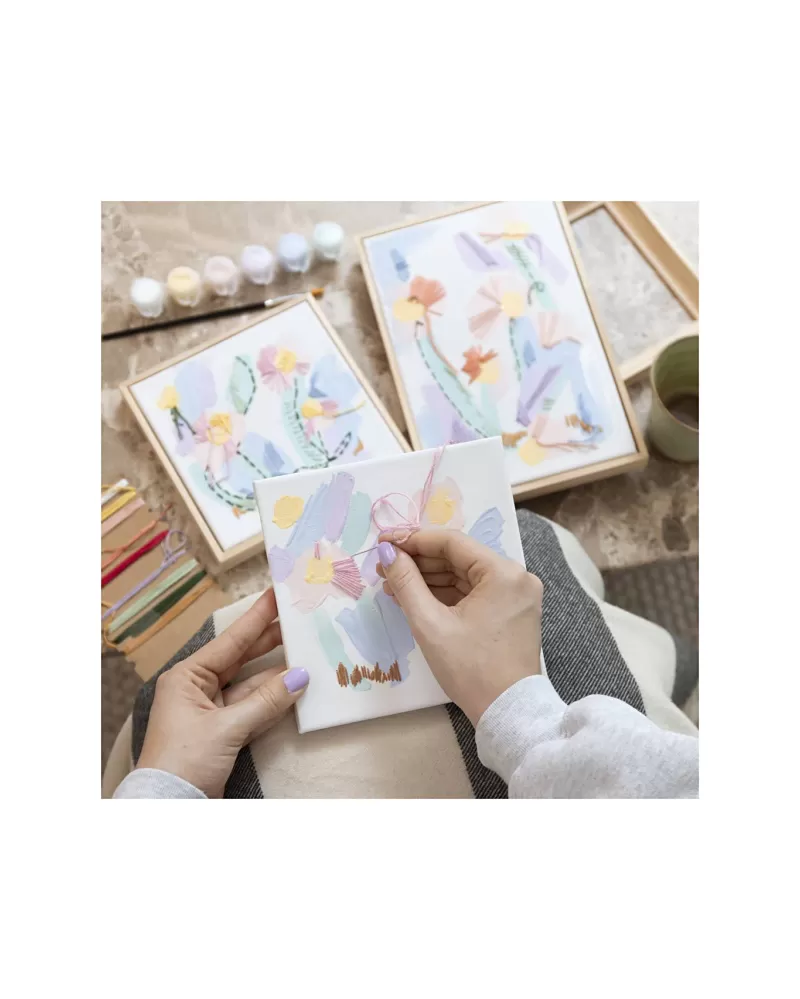 Kreativní sada pro dospělé, která spojuje malbu a výšivku do jednoho uměleckého zážitku. Ideální pro ty, kteří chtějí experimentovat, relaxovat a objevit nový způsob, jak propojit barvy, textury a nitě v originálních obrazech.