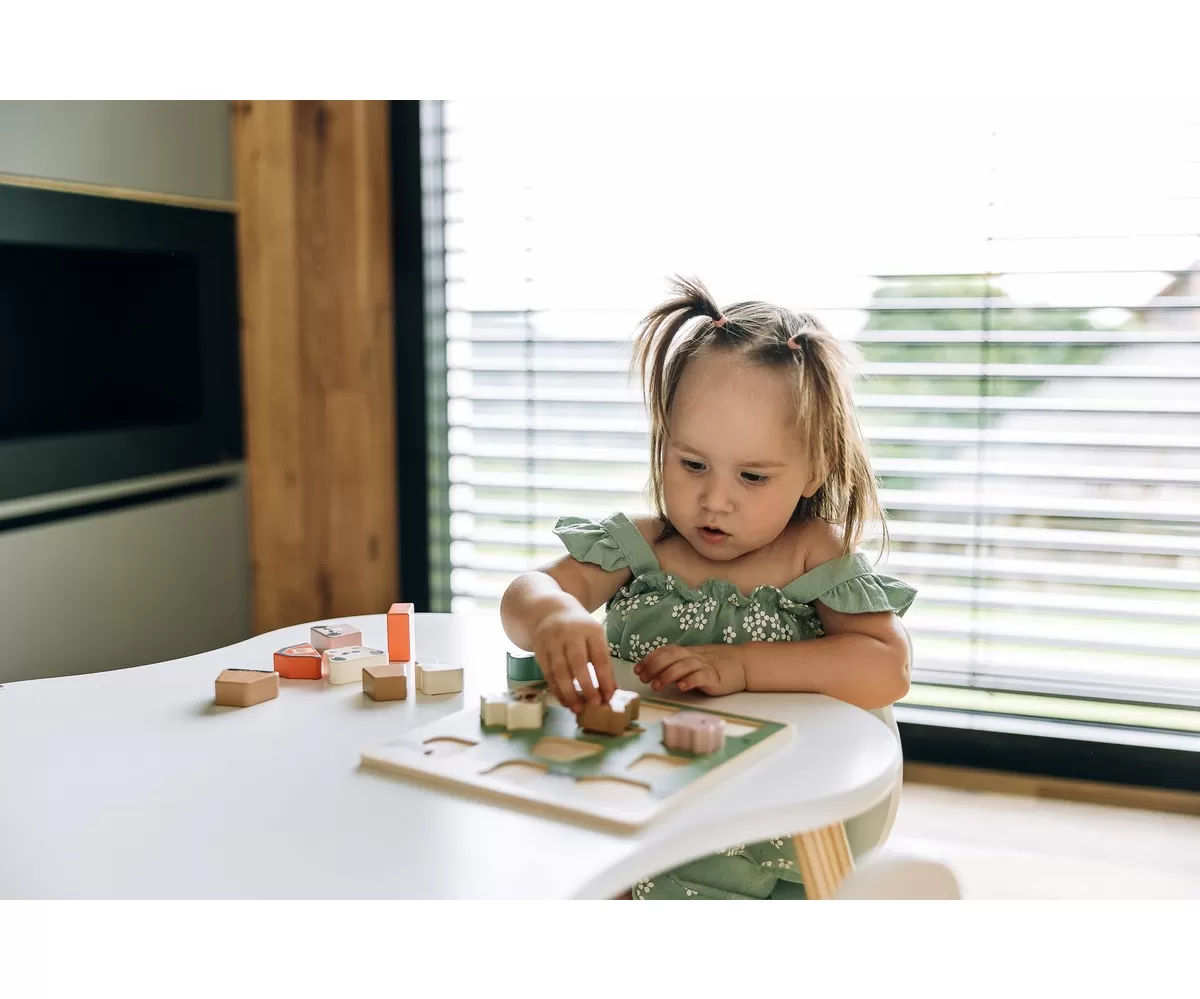 • pomáhá dětem poznávat barvy, tvary a logické skládání dílků
