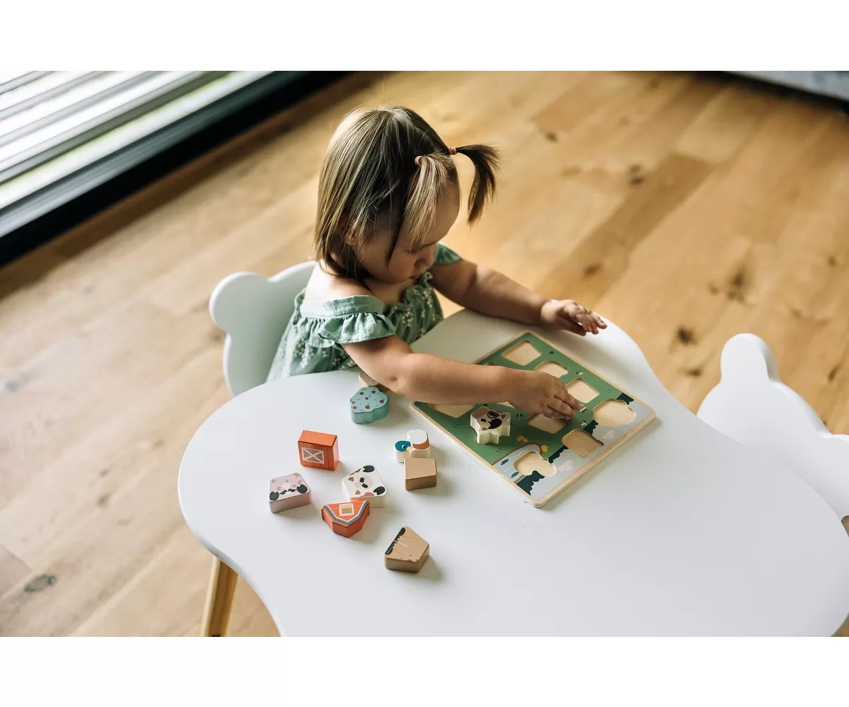 • dřevěné puzzle s motivem farmy pro zábavné učení a rozvoj představivosti