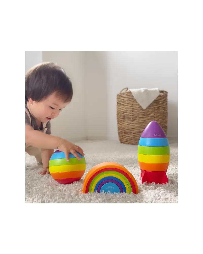 Pestrobarevná 7-dílná skládačka v podobě duhy poskytne vašemu dítěti skvělou zábavu a variabilní hru. Hračka zároveň pomáhá rozvíjet jednotlivé smysly, jemnou motoriku, koncentraci i logické myšlení dítěte.