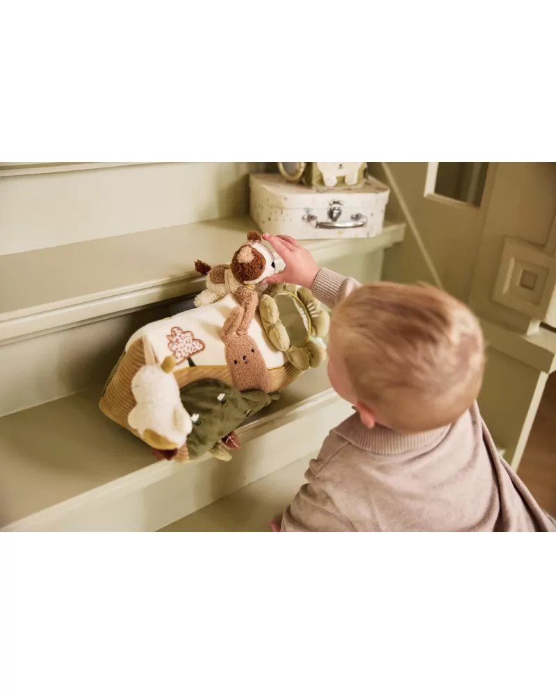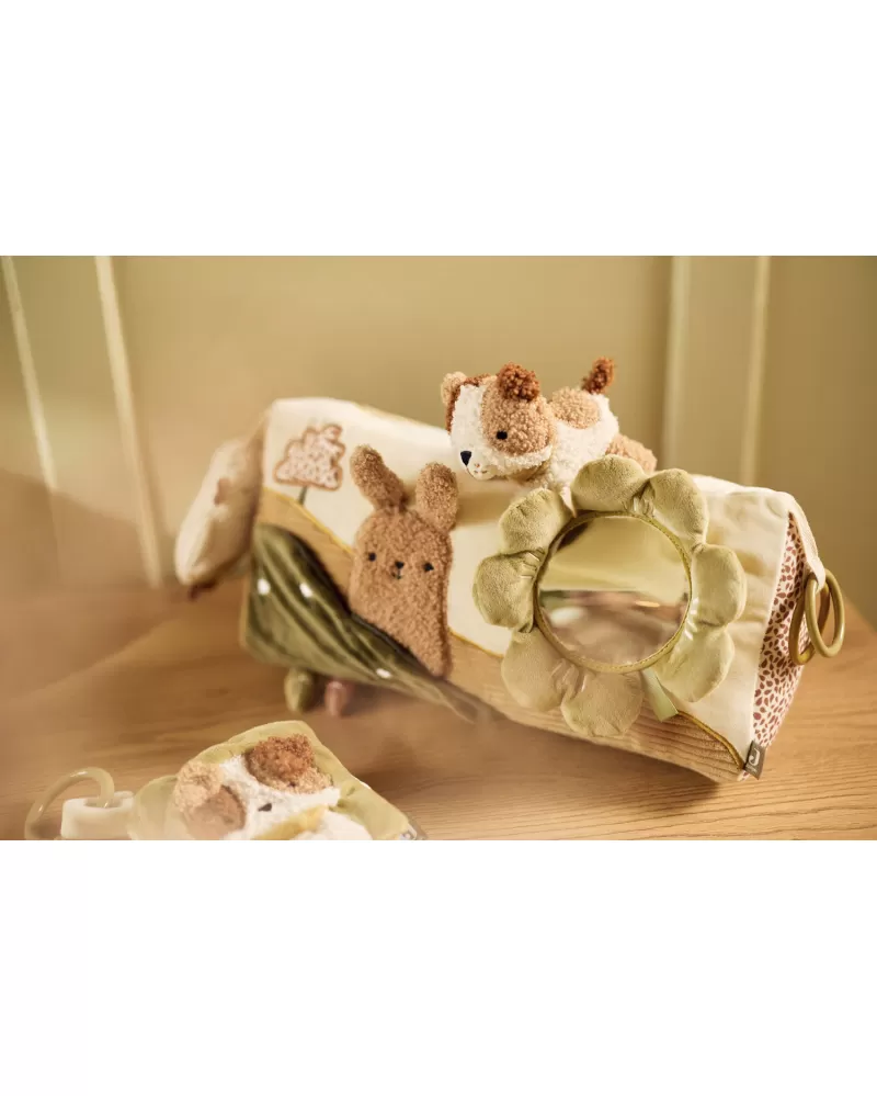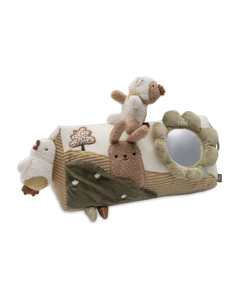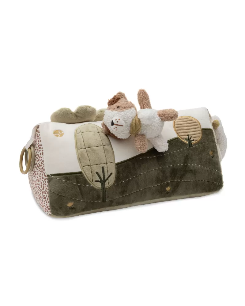 Měkký trojhranný polštářek s roztomilými zvířátky nabízí spoustu aktivit pro zábavu i rozvoj smyslů vašeho miminka. Tvar polštářku je ideální pro hraní v poloze na bříšku, která přináší dítěti jiný pohled na svět a posiluje krční a zádové svaly, které mu později umožňují začít se přetáčet, lézt a sedět bez opory.