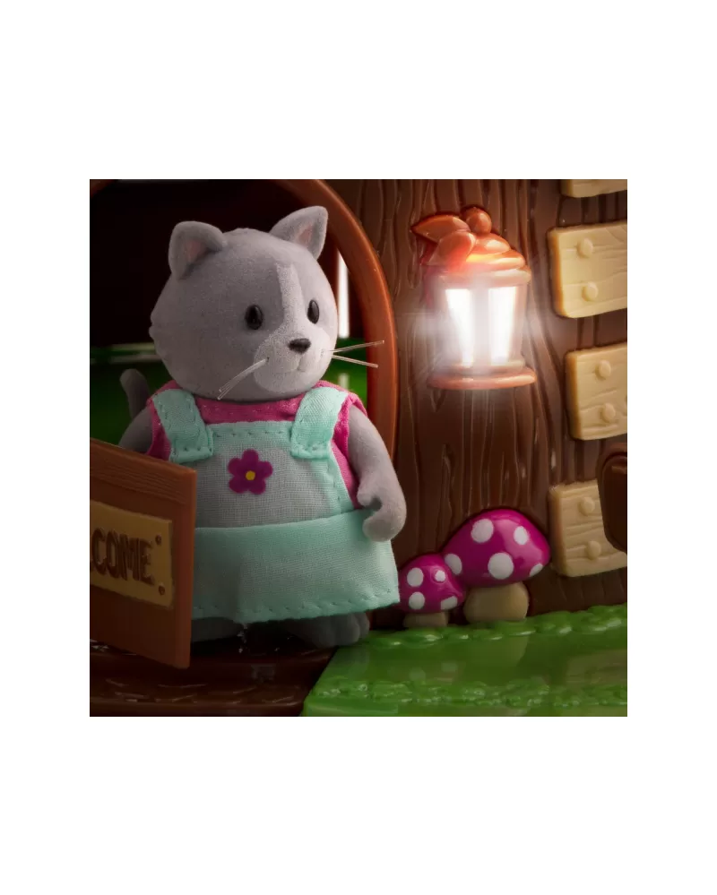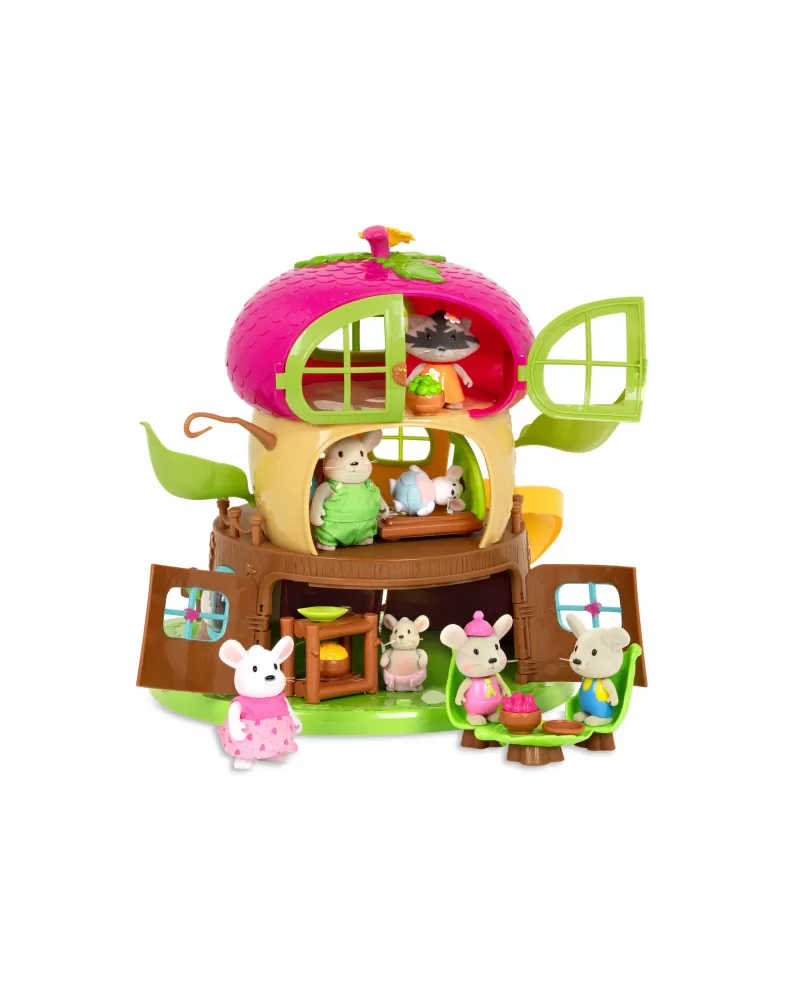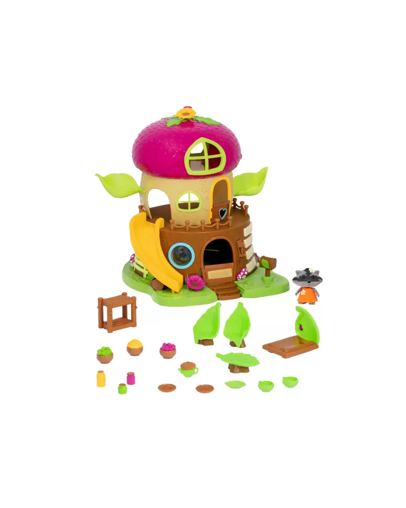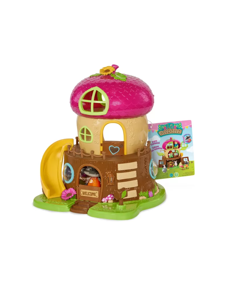 3-patrový domeček ve tvaru žaludu Acorn Treehouse je vybaven nábytkem i zábavnými aktivitami včetně skluzavky pro postavičky zvířátek Li'l Woodzeez. Když se setmí, domeček můžete rozsvítit funkčním LED osvětlením. Součástí balení je postavička mývala ze série Bobbleez. Další postavičky zvířátek Li'l Woodzeez se prodávají samostatně.
