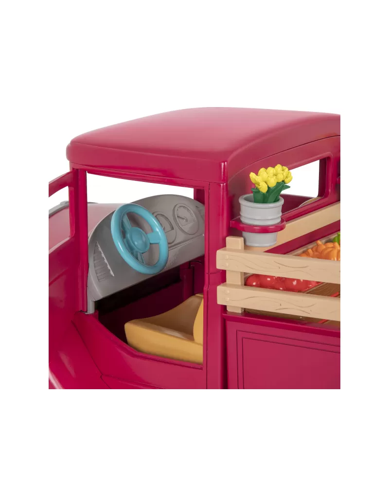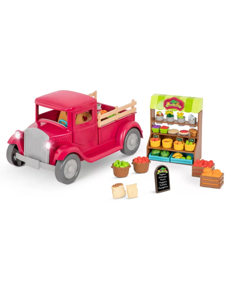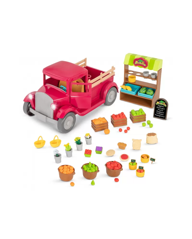 Farmářský pick-up přiváží obyvatelům městečka Honeysuckle Hollow každý den čerstvou zeleninu a ovoce sklizené ráno na farmě. Vystavte vše na stánku a pravidelně doplňujte stánek zbožím, které se vyprodá! A až budete odjíždět z trhu, nezapomeňte zmáčknout volant, kterým se rozsvítí světla a ozve se zvuk, aby všichni vědělí, že jedete! Postavičky zvířátek nejsou součástí balení, prodávají se samostatně.