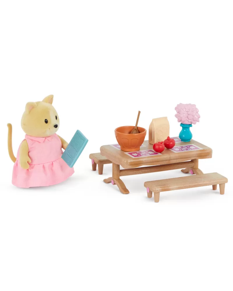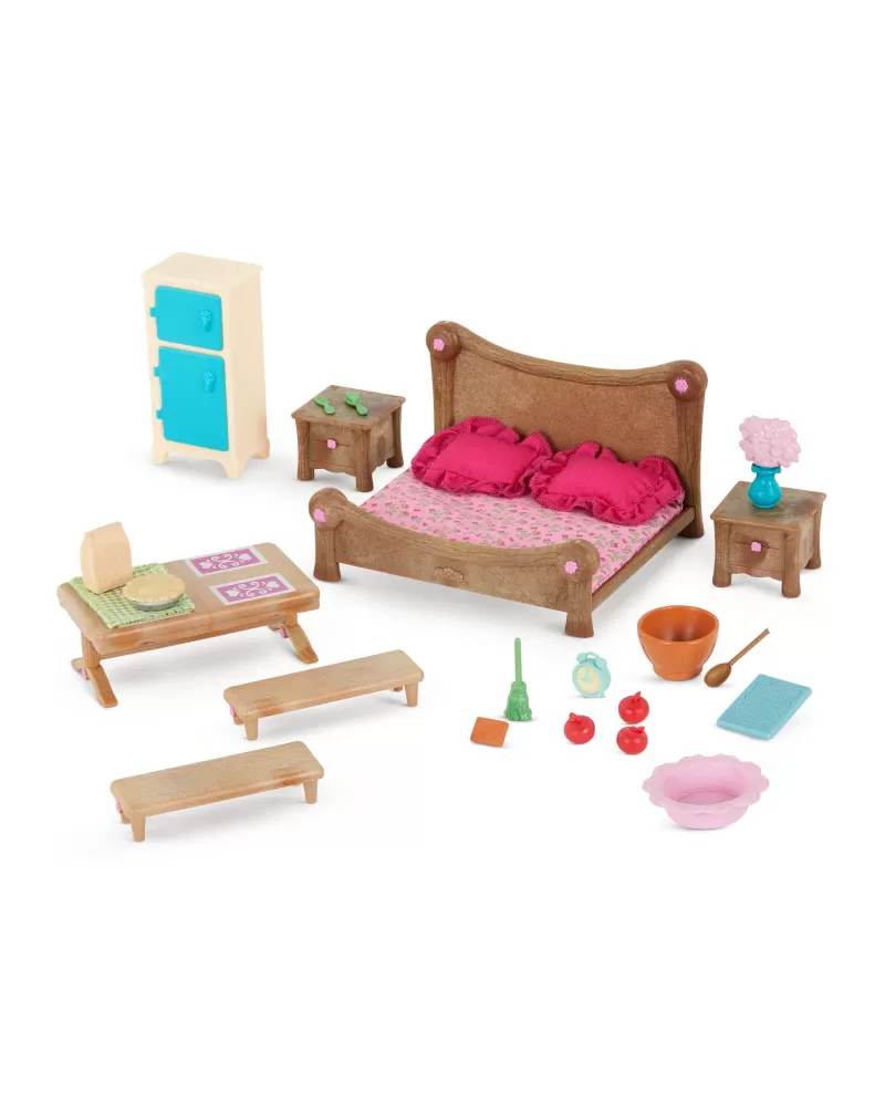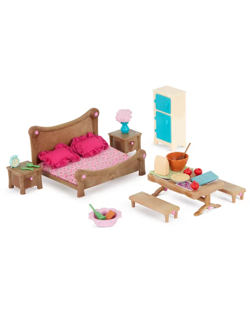 Sada nábytku vám umožní vybavit ložnici a jídelnu v domečku pro postavičky zvířátek Li'l Woodzeez. Až se po dobré večeři budou zvířátka ukládat k spánku do pohodlné postele, nezapomeňte nastavit budíček! Domeček i postavičky zvířátek se prodávají samostatně.