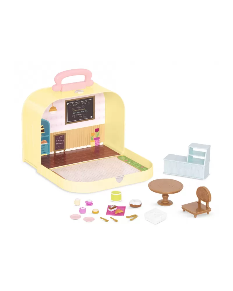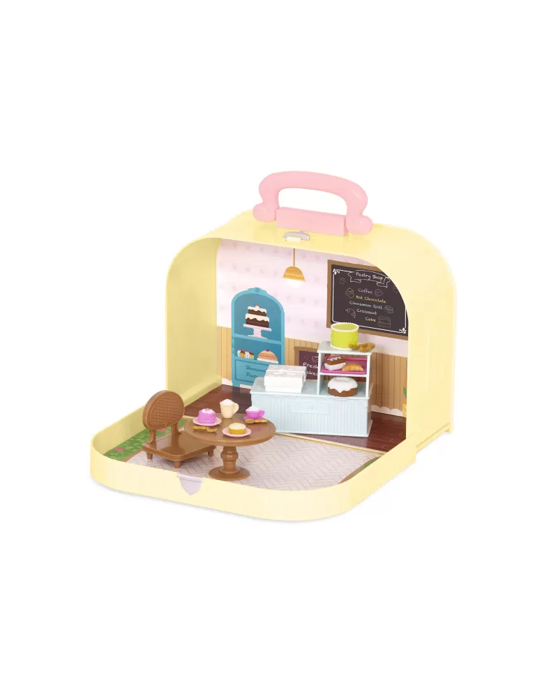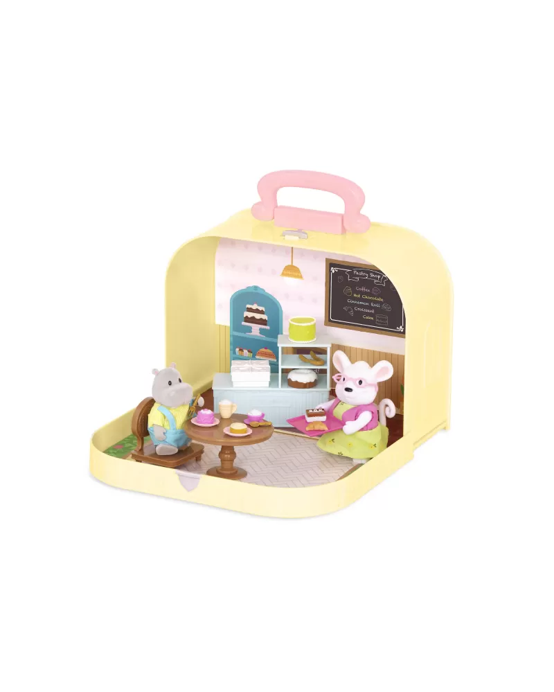 Cestovní sada hraček Li'l Woodzeeze v praktickém kufříku umožní vašemu dítěti hrát si se kdekoli na dovolené, výletech či během víkendu u prarodičů. Kufřík se po otevření promění v bohatě vybavenou cukrárnu s nábytkem a doplňky.