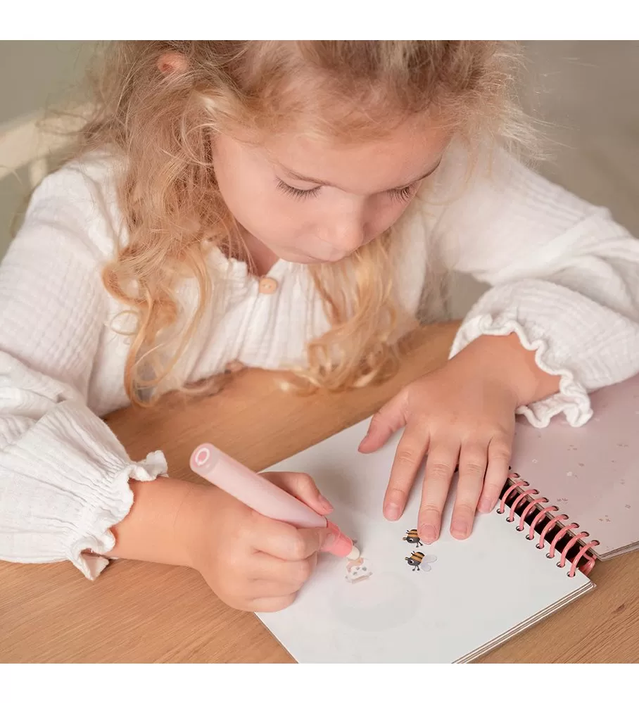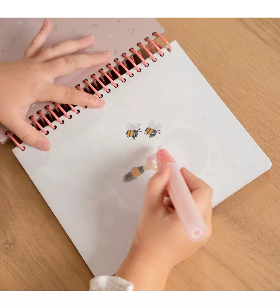 Knížka s pěti ilustrovanými stránkami je opakovaně použitelná. Díky kroužkové vazbě z pevného kartonu drží otevřená pro pohodlné malování.