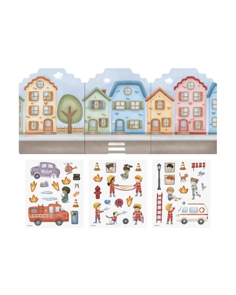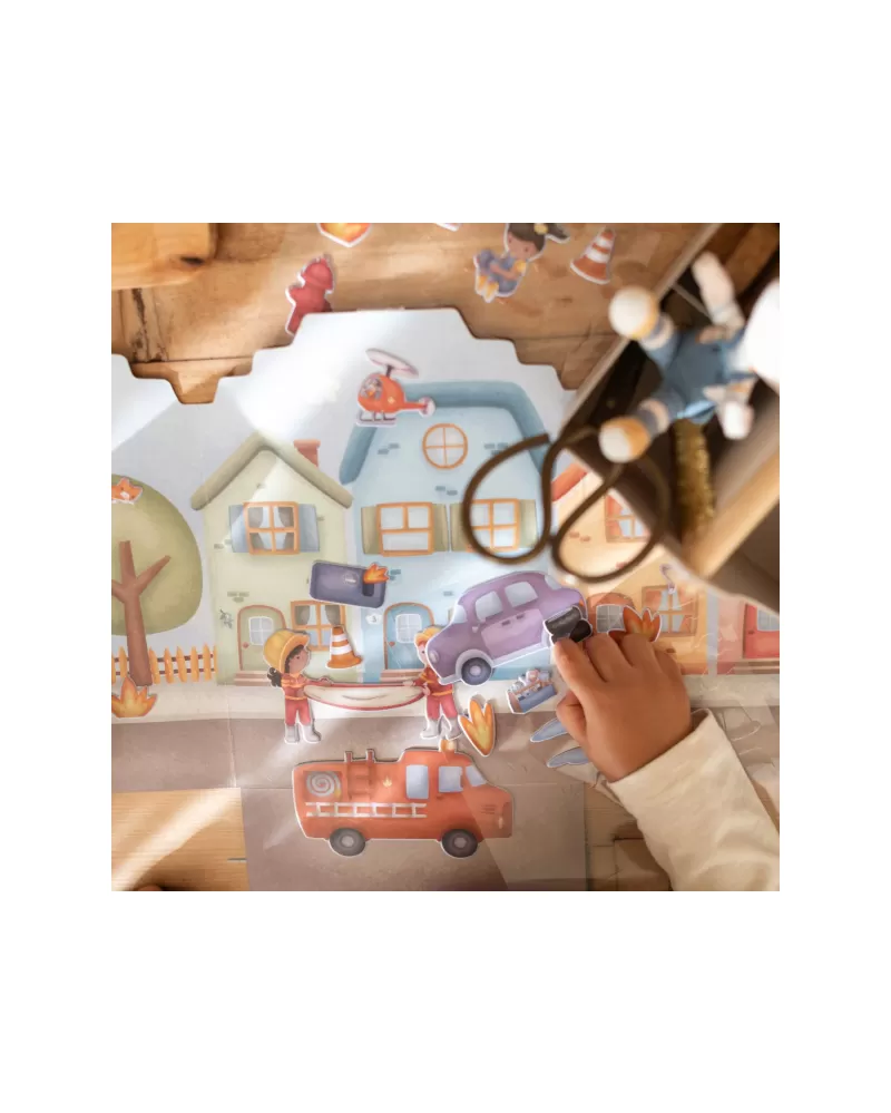 Podpořte dětskou fantazii s touto sadou opakovaně použitelných samolepek Little Dutch. Děti mohou znovu a znovu vyzdobit hasičskou stanici a ulice města více než čtyřiceti veselými 3D samolepkami a pokaždé vytvořit jiný příběh.