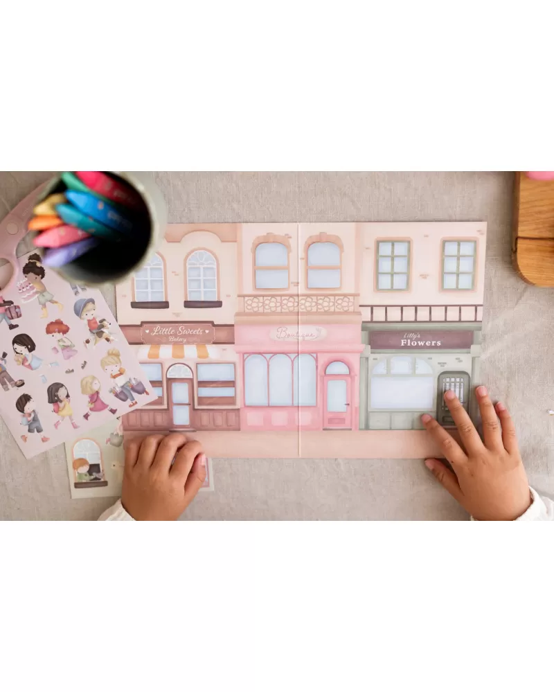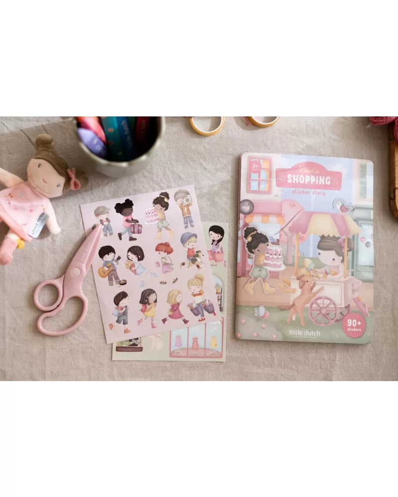 Fantazie vašeho dítěte ožije s touto veselou samolepkovou knížkou Little Dutch. Obsahuje více než 90 barevných samolepek s tématem nakupování a oboustranné herní pozadí, na kterém si děti mohou vytvářet vlastní příběhy, scény a dobrodružství.