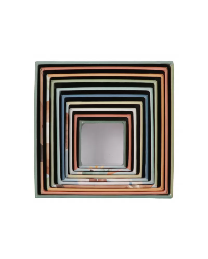 Nejmenší kostka má 5 cm a největší má 14 cm. Po skončení hraní kostky snadno uložíte složením do sebe.