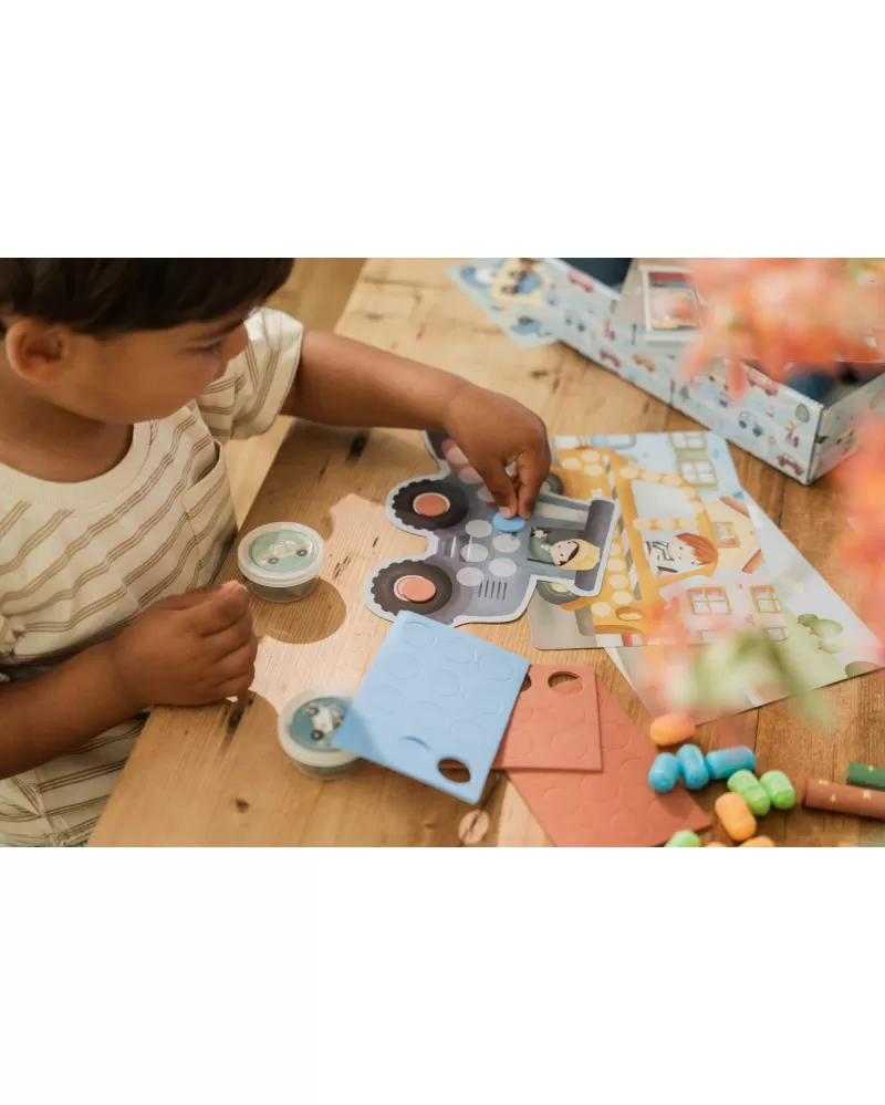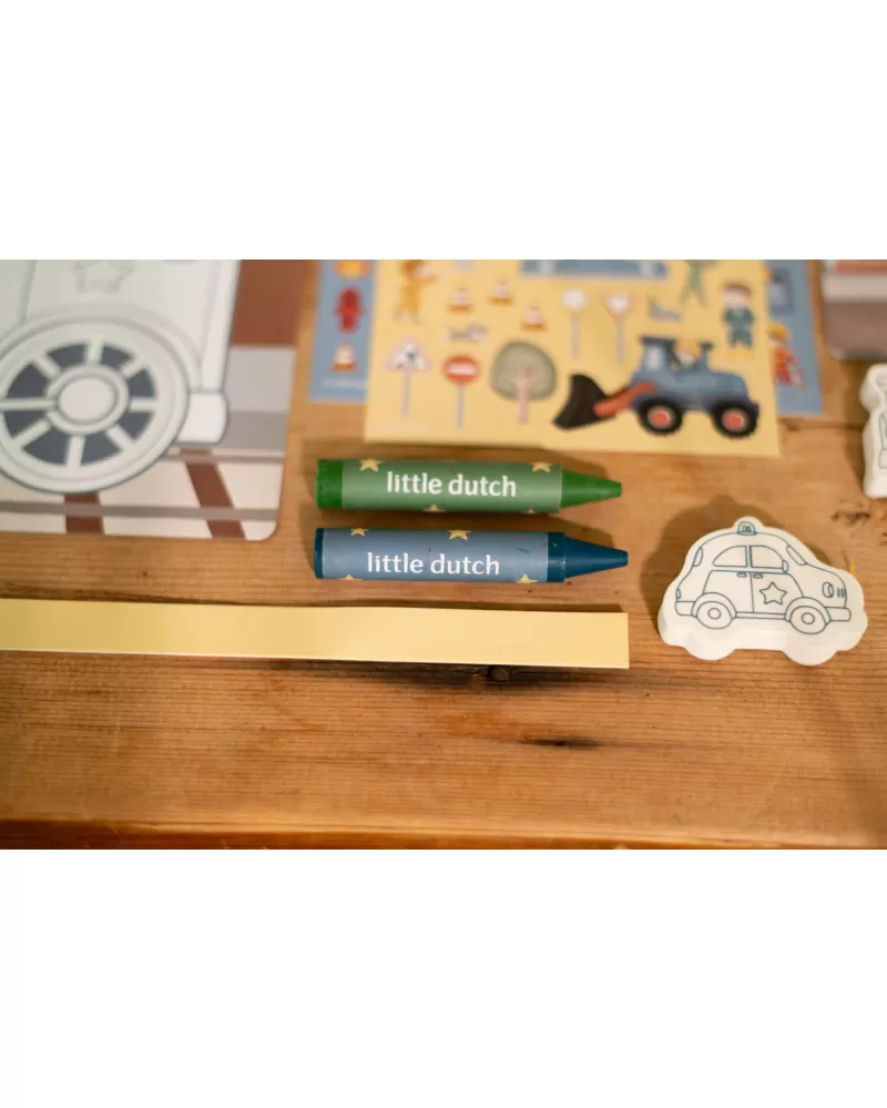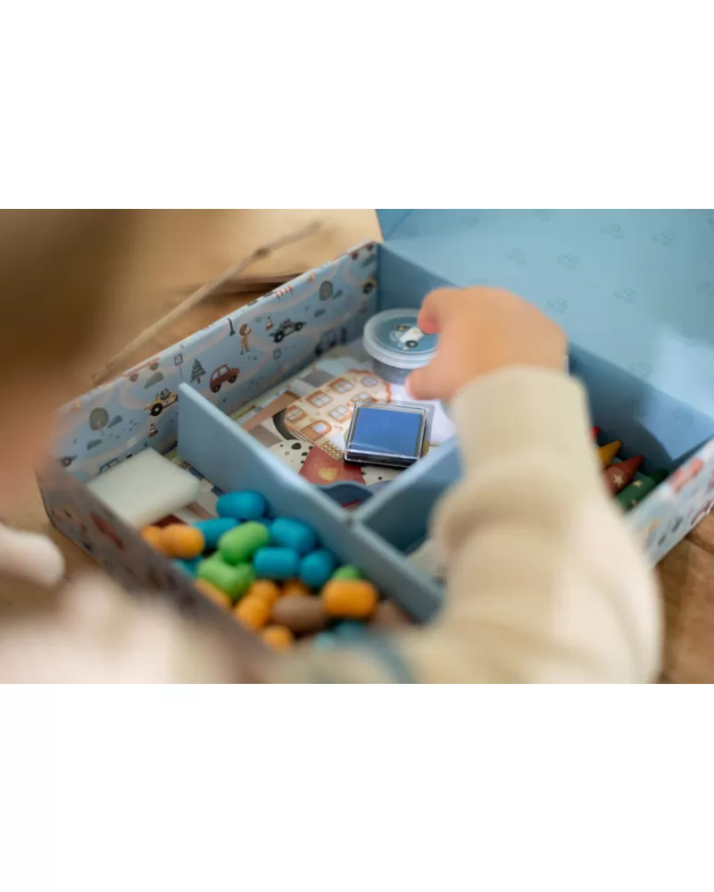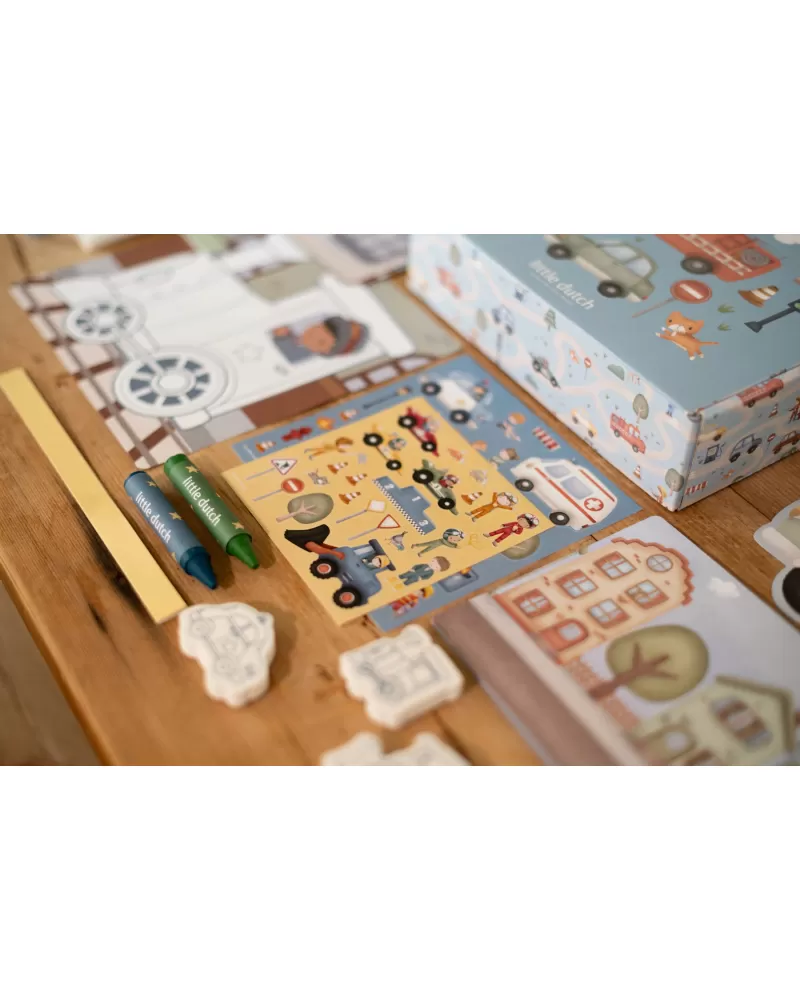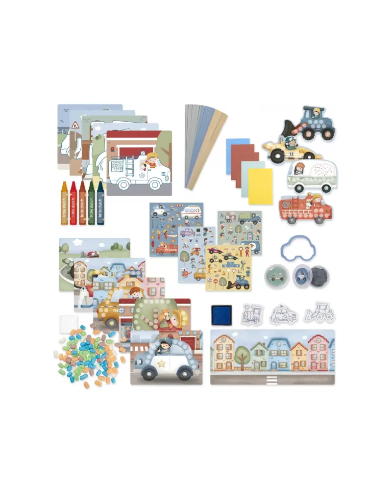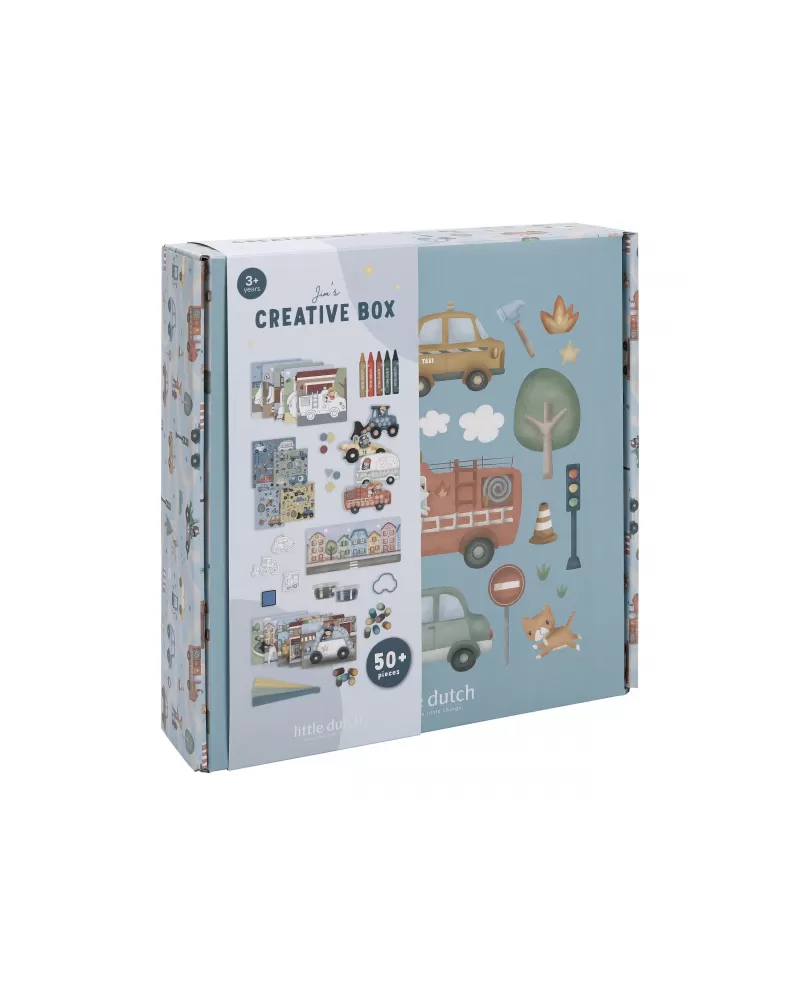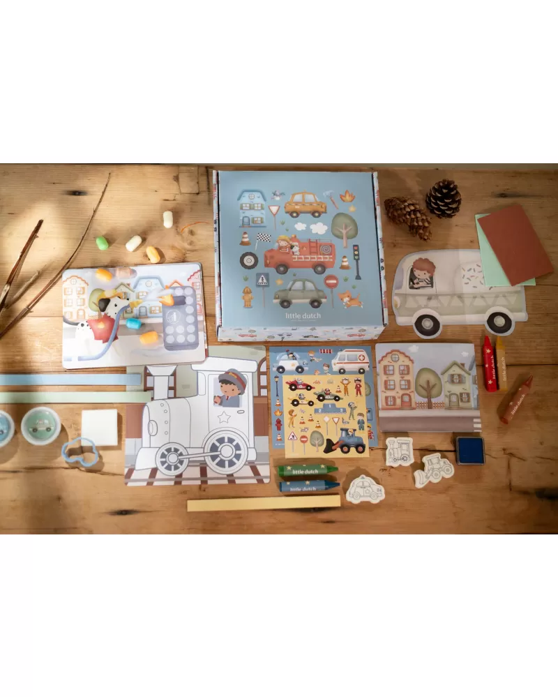 Podpořte dětskou fantazii s touto velkou kreativní sadou Little Dutch s tématikou dopravních prostředků a života ve městě. Krabice je plná výtvarných pomůcek, které inspirují k tvoření, malování i lepení.