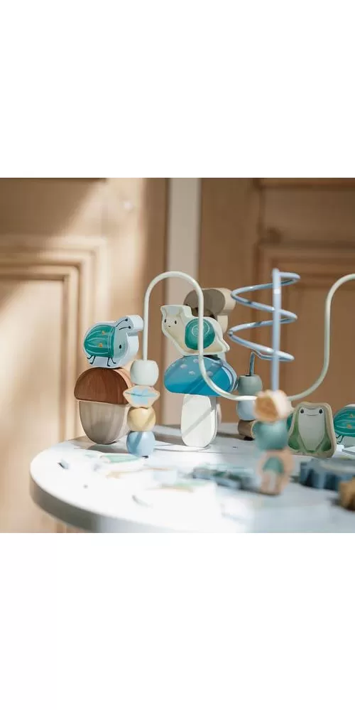 Dřevěný multifunkční stolek v krásném a vysoce kvalitním provedení nabízí vašemu dítěti množství různorodých aktivit, které dítě zabaví a zároveň pomáhají rozvíjet jeho jemnou motoriku i jednotlivé smysly. Lákat dítě ke zkoumání budou pohyblivé, posuvné i odnímatelné dřevěné díly v podobě ježka, šneka, žáby, houbiček a dalších motivů ze života v lese.