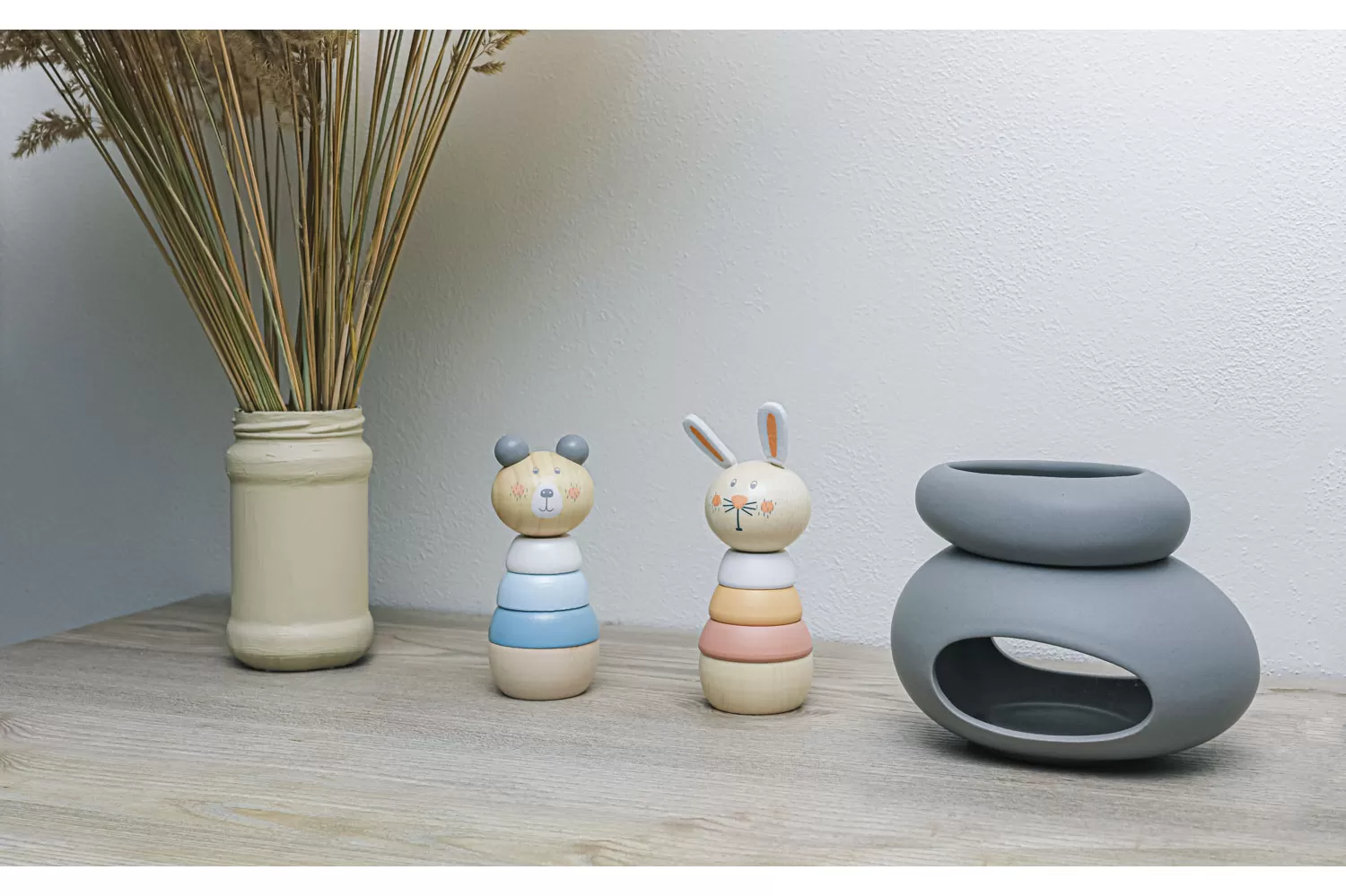 Zabavte dítě na dlouhé hodiny! Nasazovací hračka králík je sada vyrobená z dřevěných kousků, které se rozloží a opětovně nasazují. Roztomilý design králíčka dítě zaujme a pomůže mu hravou formou rozvíjet motoriku a prostorové myšlení.