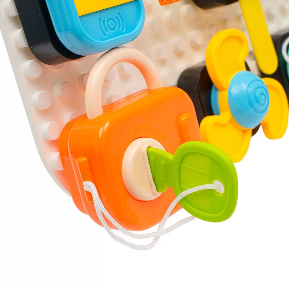 15 prvků: Tabule je vybavena různými interaktivními prvky, jako jsou tlačítka, klavírky a další funkce, které dítě povzbuzují k objevování.