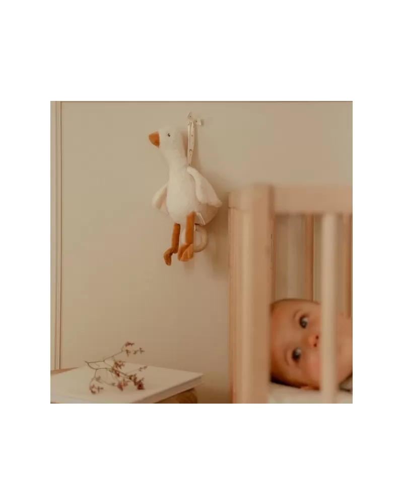 Závěsná plyšová husička v sobě skrývá natahovací hudební box s příjemnou ukolébavkou, která vaše miminko uklidní a pomůže mu usnout. Husičku snadno zavěsíte poblíž postýlky.