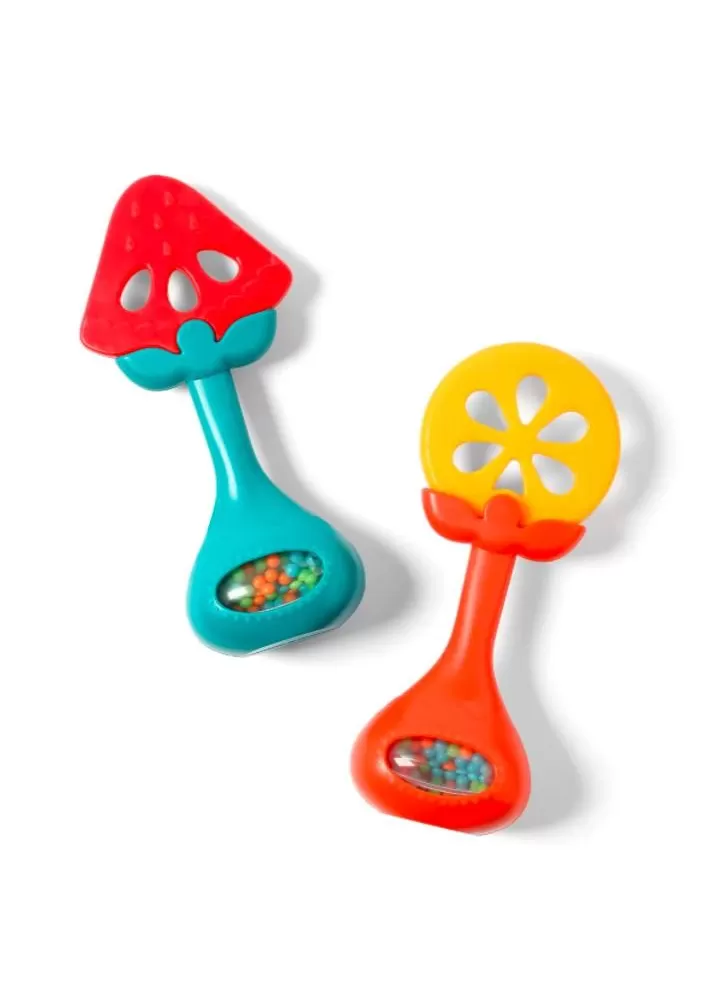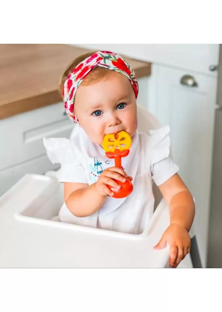 Vlastnosti: ÚČINNÉ: - rozmanitý povrch pomáhá uklidnit svědění dásní a zmírnit bolest při prořezávání prvních zubů a podporuje správný vývoj PRAKTICKÉ: - jeho struktura umožňuje snadné uchopení kousátka pro malé ručičky - kombinace kousátka a chrastítka je ideální na stimulaci smyslů - skvělé pro vaše dítě, které si procvičuje uchopení a přenos z jedné ruky do druhé BEZPEČNÉ: - vyrobeno z odolných a bezpečných materiálů, neobsahujících BPA