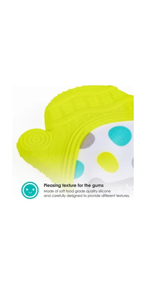 Kousací rukavice hravě uleví bolavým dětským dásním z potravinářského silikonu různé textury, které uleví při bolesti dásní Celý popis