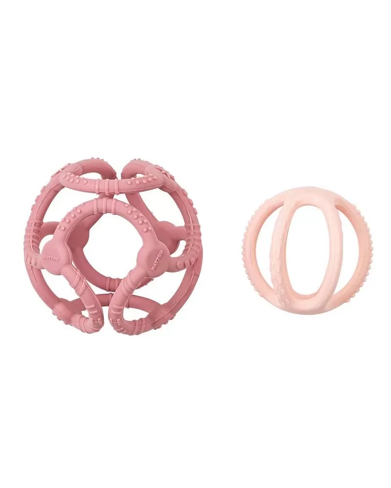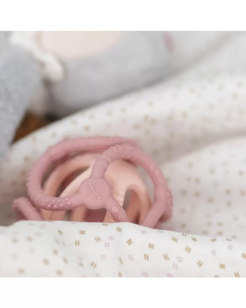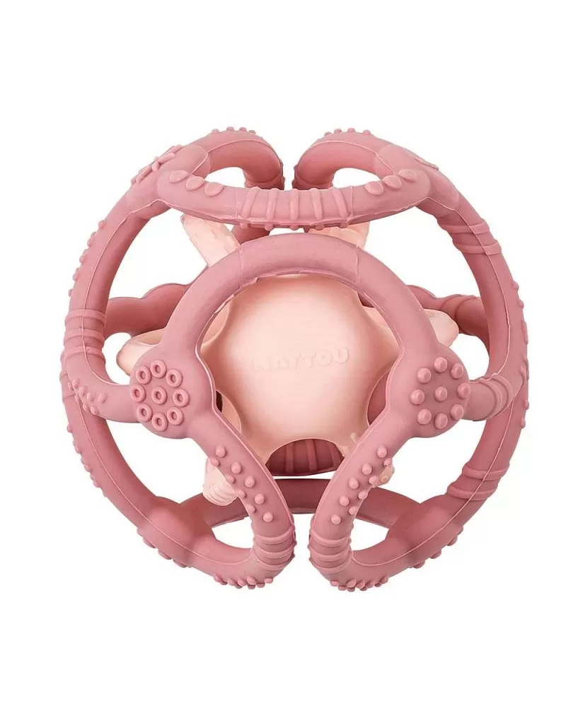 NATTOU Kousátko silikonové míč 2v1 bez BPA 10 cm růžová