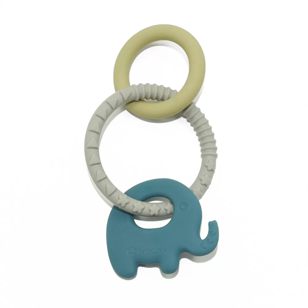 Silikonové kousátko ELEFI Měkké silikonové kousátko sestávající z kroužku se 3 zajímavými prvky je vyrobeno výhradně z potravinářského silikonu bez obsahu BPA. Nejkvalitnější odolné materiály zaručují bezpečnost vašeho děťátka během hry a prořezávání zoubků. Pružný silikon je dokonale vhodný pro citlivé dětské dásně. Pomáhá zmírnit bolest, která vzniká při prořezávání zoubků, neboť při kousání kousátka se jemně masírují dásně. Kousátko lze zchladit v chladničce a dát děťátku studené. Různé povrchy kousátka stimulují správný vývoj čelisti. Přiměřená velikost kousátka umožňuje děťátku snadné uchopení a vynikající, bezpečnou hru, která stimuluje jeho vývoj.
