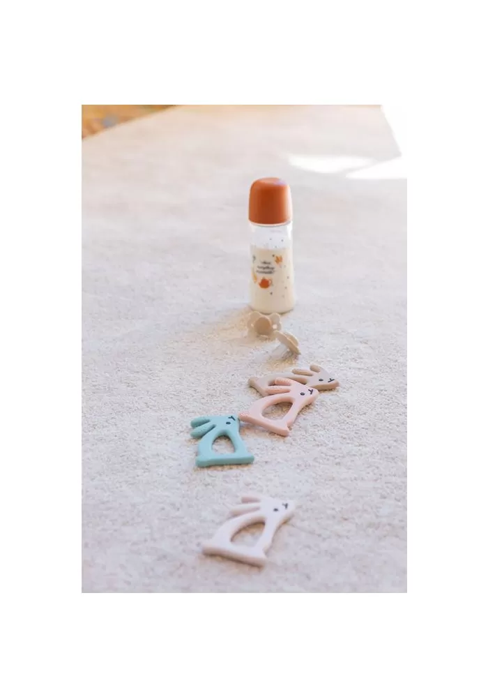 Silikonové kousátko ve tvaru králíčka s drobnými výstupky pro úlevu pro dětské dásně. Evoluční kousátka jsou bezpečná, ergonomická, lehká a velmi zábavná.