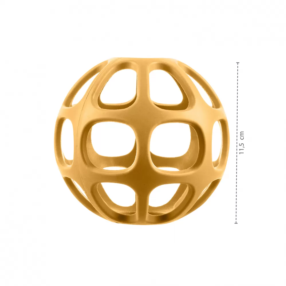 Kousátko je vyrobeno z bezpečného potravinářského silikonu, který je netoxický a odolný proti rozbití. Pro malé děti je silikon přirozenější než plast či kov. Design ve tvaru otevřeného míčku skvěle padne i do té nejmenší pěstičky a dítě jej snadno uchopí z každého úhlu. Kousátko díky svému tvarování stimuluje motoriku rukou, zejména koordinaci ruka-oko.