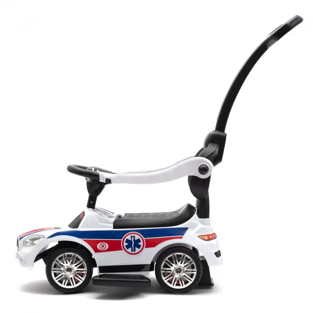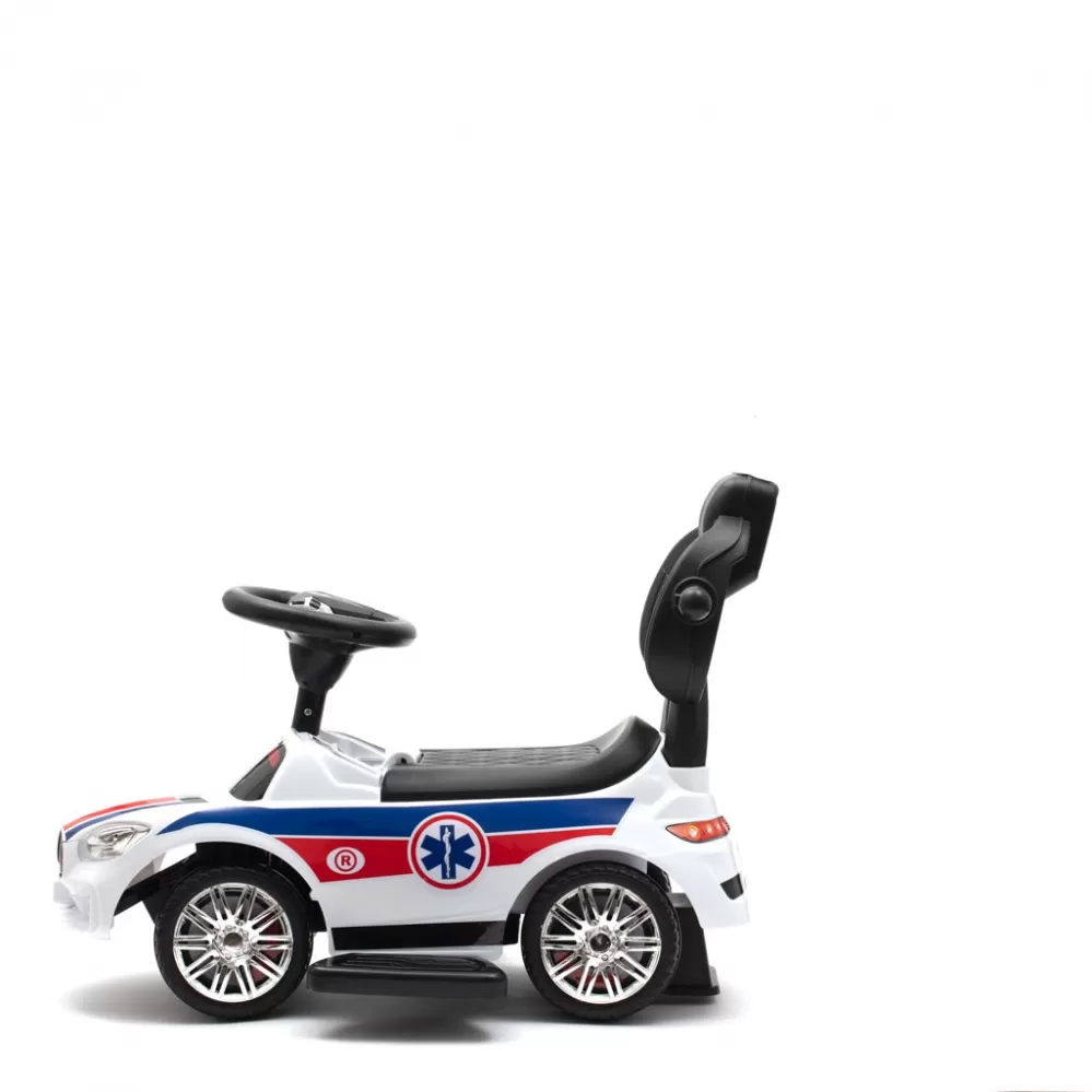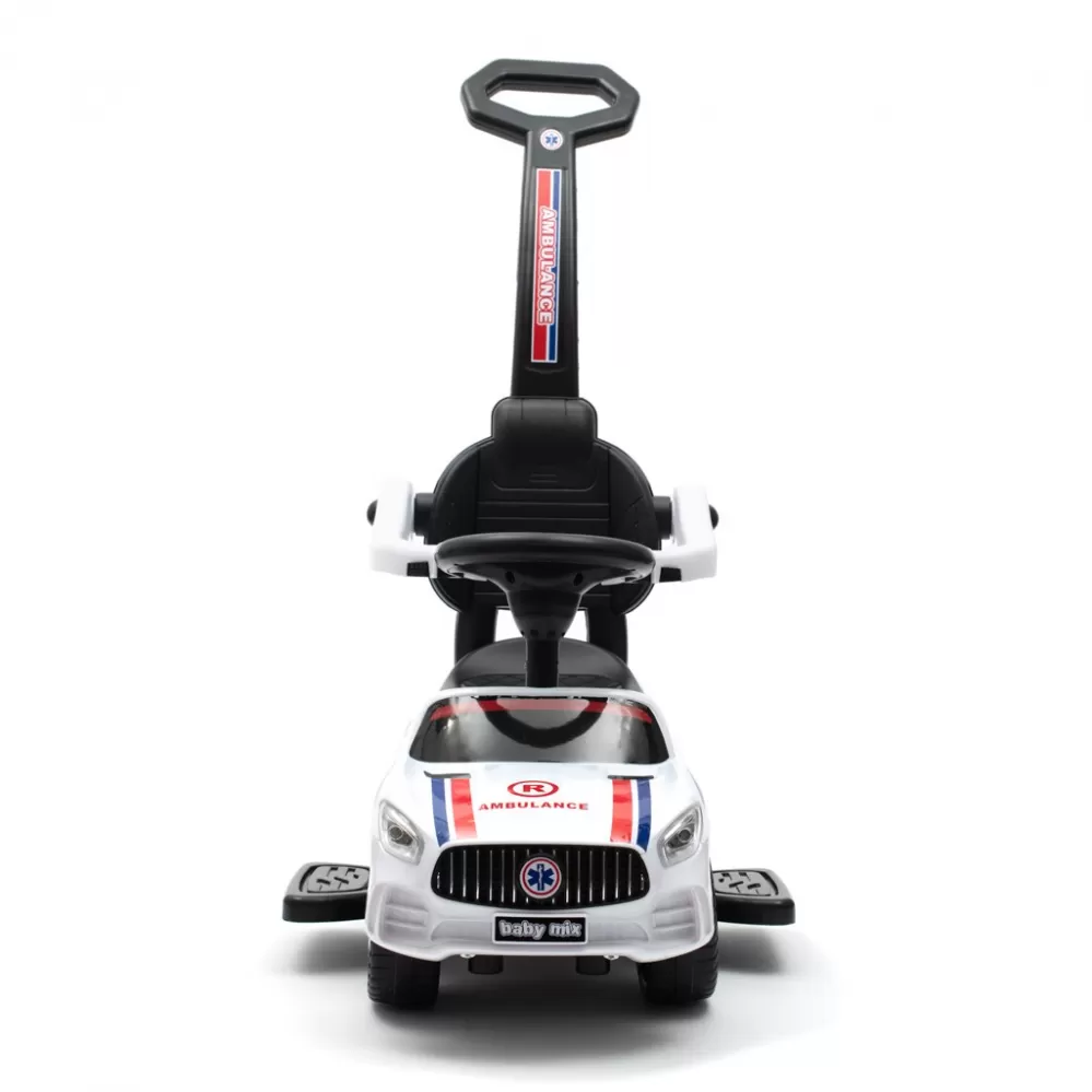 Autíčko jezdítko Baby Mix AMBULANCE je opravdovou lahůdkou pro všechny záchranáře. Dokonalé zpracování a detaily jako kola, světla nebo tvar karoserie, přitahují pozornost všech a rychle se stanou oblíbenou hračkou doma i na procházce. Je vyrobeno z kvalitních materiálů a je vybaveno zvukovým panelem. Jezdítko pomáhá rozvíjet motorické schopnosti dítěte a zaručuje spoustu zábavy a radosti. Díky speciální blokádě v zadní části je váš závodník chráněn proti převrácení. Vodící tyč, opěrky na ruce a podnožky lze sundat, a tím dítě využije autíčko jako klasické odrážedlo.