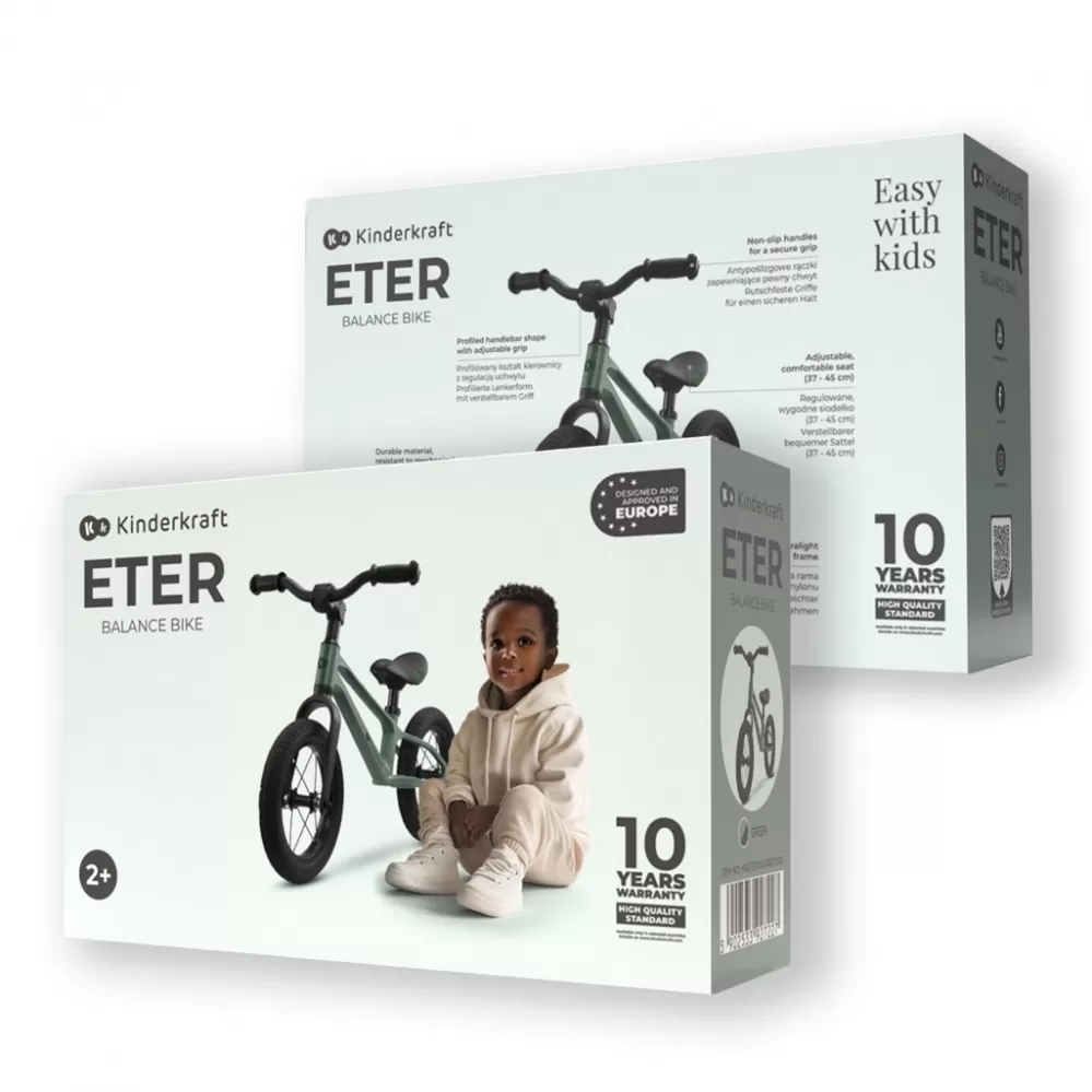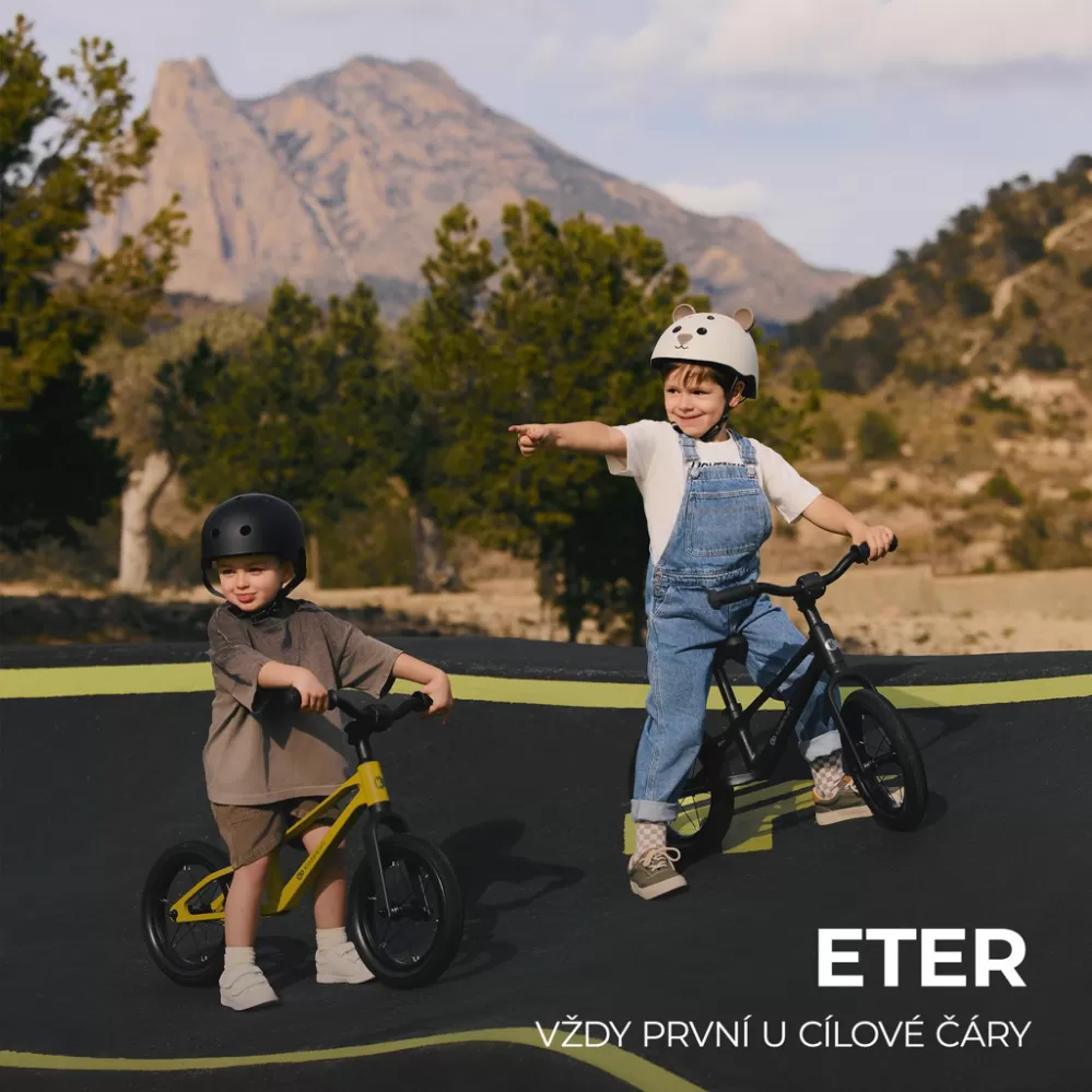 Vždy první v cíli. ETER je ultralehké balanční odrážedlo (3 kg) se sportovním designem, ideální pro malé milovníky rychlosti. Monolitický rám z nylonu je extrémně lehký, odolný vůči vlhkosti, korozi i mechanickému poškození. Nastavitelné sedátko a 12palcová bezúdržbová PU kola zajišťují pohodlnou a stabilní jízdu. Protiskluzové rukojeti, ergonomická řídítka a bezpečná konstrukce poskytují maximální ochranu. Rám slouží také jako praktická rukojeť pro přenášení – nebo jako místo k odpočinku během hry.