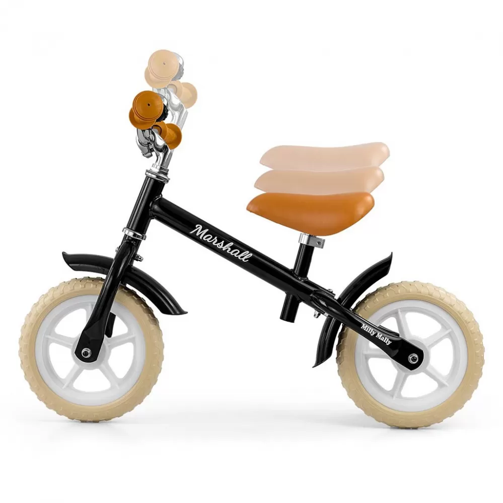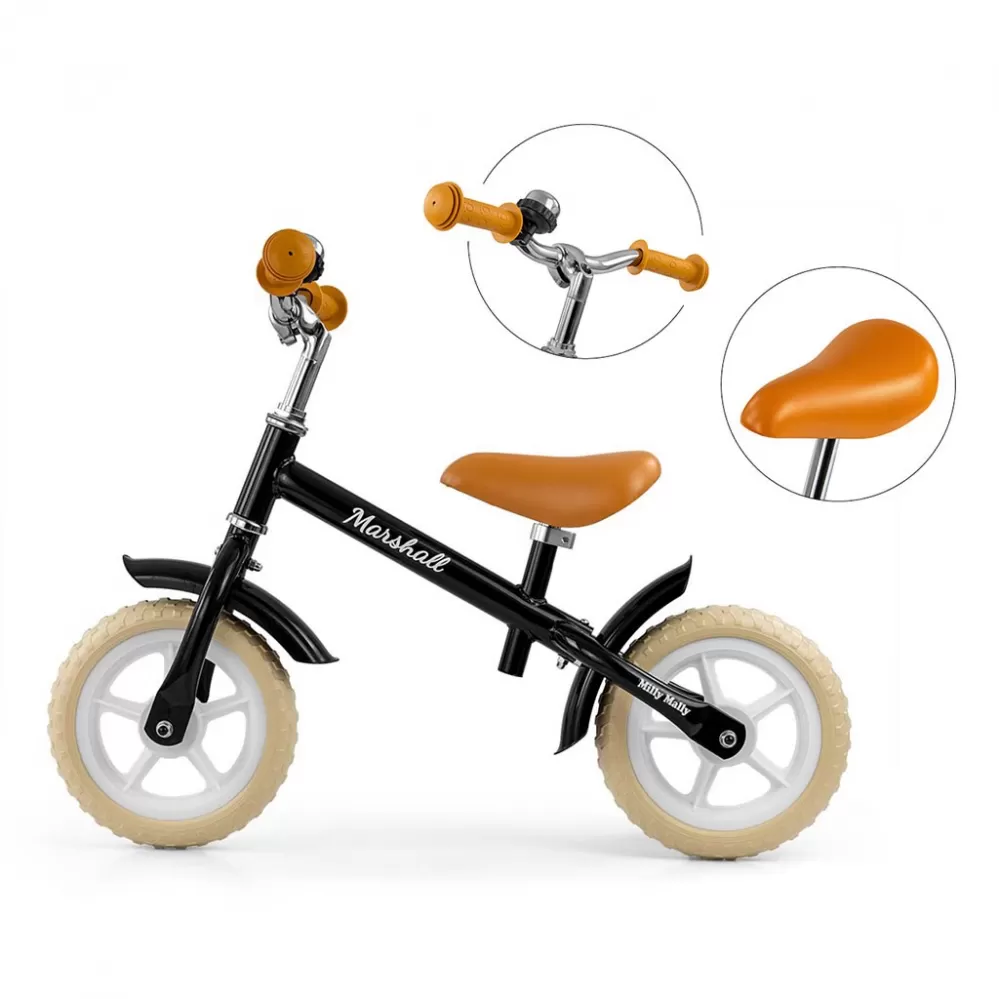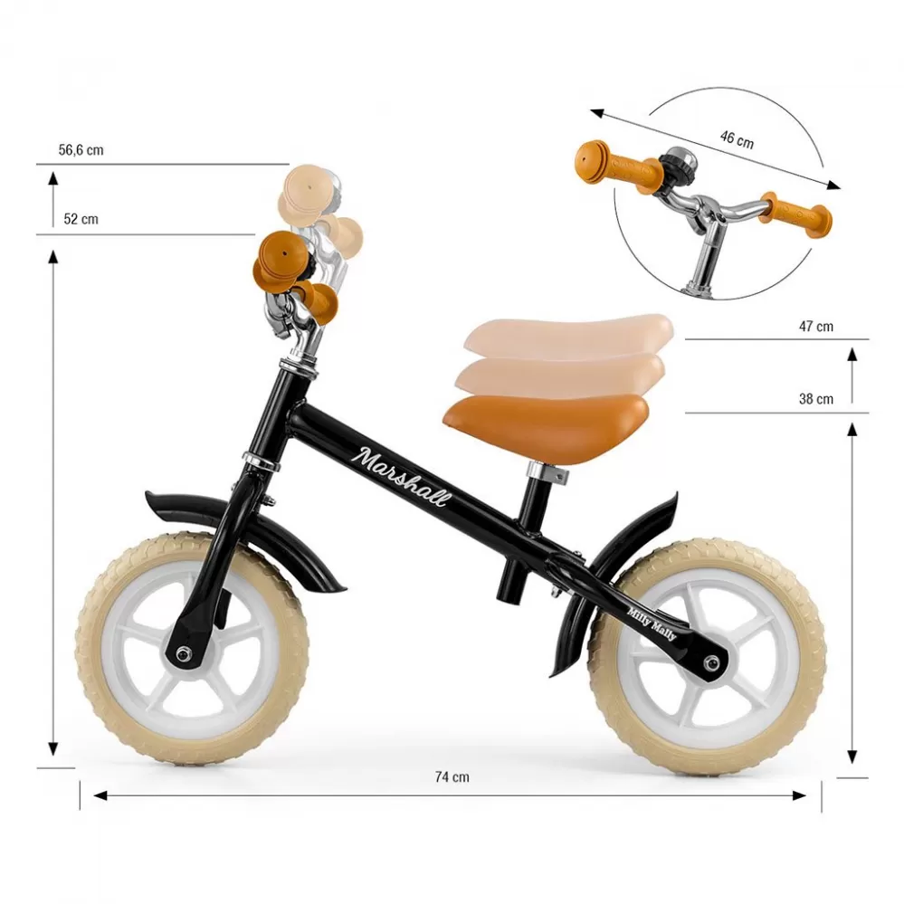 Jízda na odrážedle je ideální pro učení rovnováhy, takže pozdější jízda na klasickém kole bude mnohem jednodušší. Kolo je bez pedálů, díky čemuž se dítě dokáže soustředit hlavně na držení rovnováhy a směr jízdy. Odolné pneumatiky na bílých ráfcích, vyrobené z pěny EVA, jsou trvanlivé a nevyžadují huštění. Díky ergonomicky tvarované a výškově nastavitelné sedlovce s měkkou výplní, kolo spolu s vašim dítětem poroste. Výškově nastavitelná řídítka jsou uložena v kuličkovém ložisku. Protiskluzové gumové rukojeti zajistí dítěti bezpečný úchop a pohodlnou manipulaci. Klasický a ergonomický design kola zaručí dlouhou životnost a pohodlí během používání. Ocelový rám odrážedla poskytuje ještě větší odolnost a jeho kontrukce je přizpůsobena k dlouhodobému užívání.